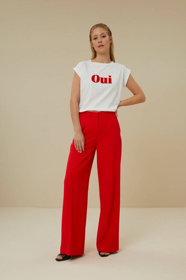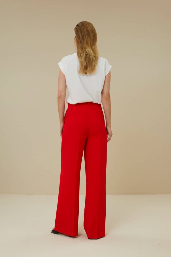 Deze superzachte trendy broek heeft tegelijk een klassieke look and feel en heeft een losse pasvorm met rechte pijpen. de broek heeft een blinde ritssluiting en twee steekzakken aan de bovenzijde. een echte tijdloze klassieker!