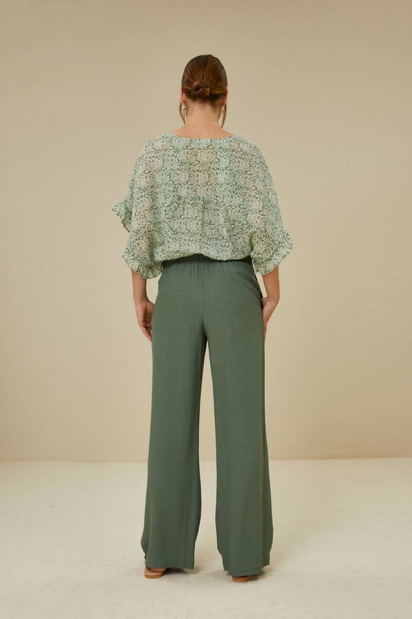 Deze fantastische broek is vervaardigd uit een zachte ecovero viscose kwaliteit, die ervoor zorgt dat je de broek moeiteloos kunt combineren. Dit milieuvriendelijke productieproces zorgt tot wel 50% minder co2 uitstoot & verlaagd de waterimpact. De pulp van de viscose komt uit gecertificeerde bossen. Het is een rechtvallend model en heeft een elastieken band aan de bovenzijde. De soepelvallende stof valt vloeiend en zorgt voor een vrouwelijke look.