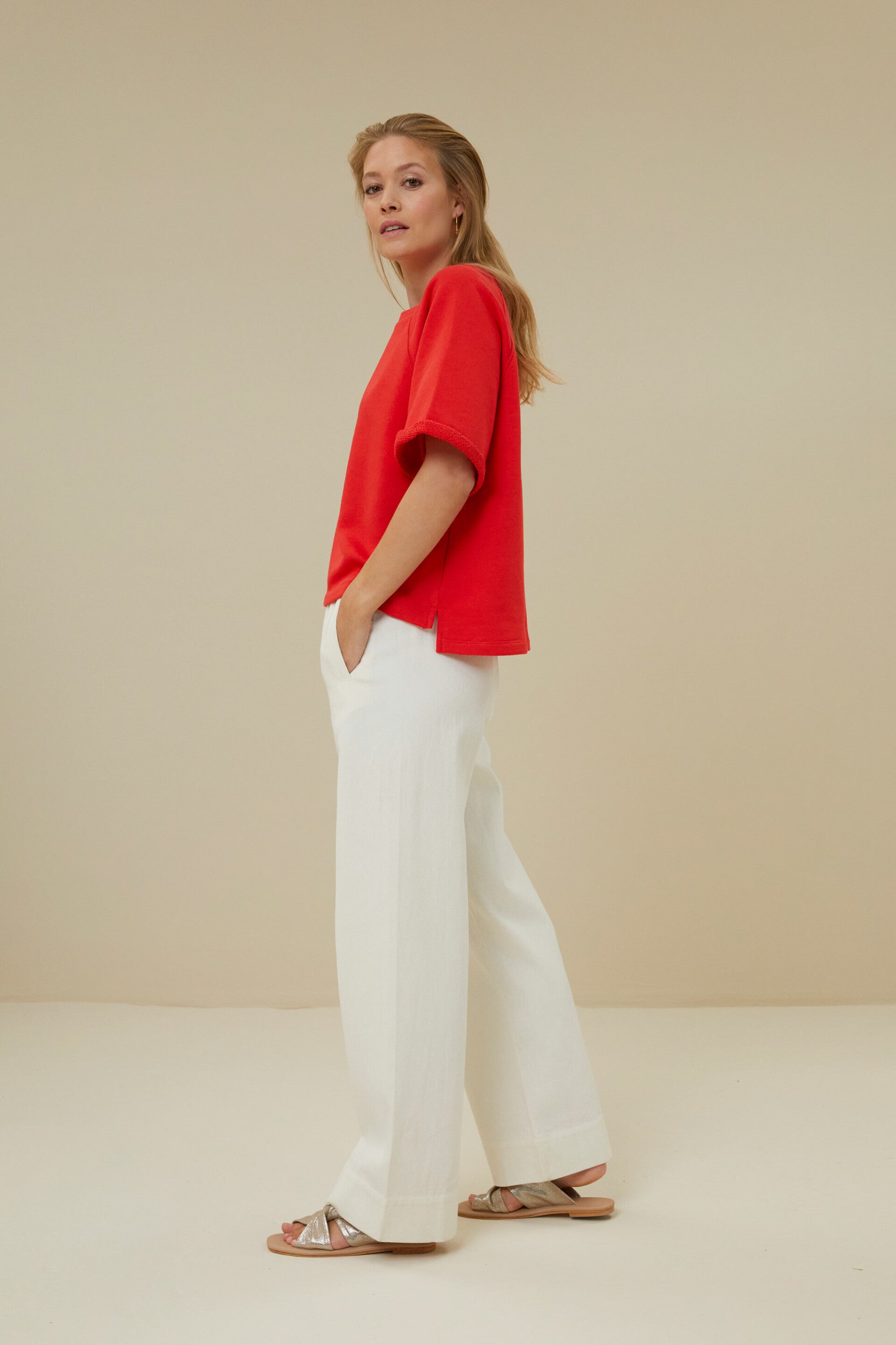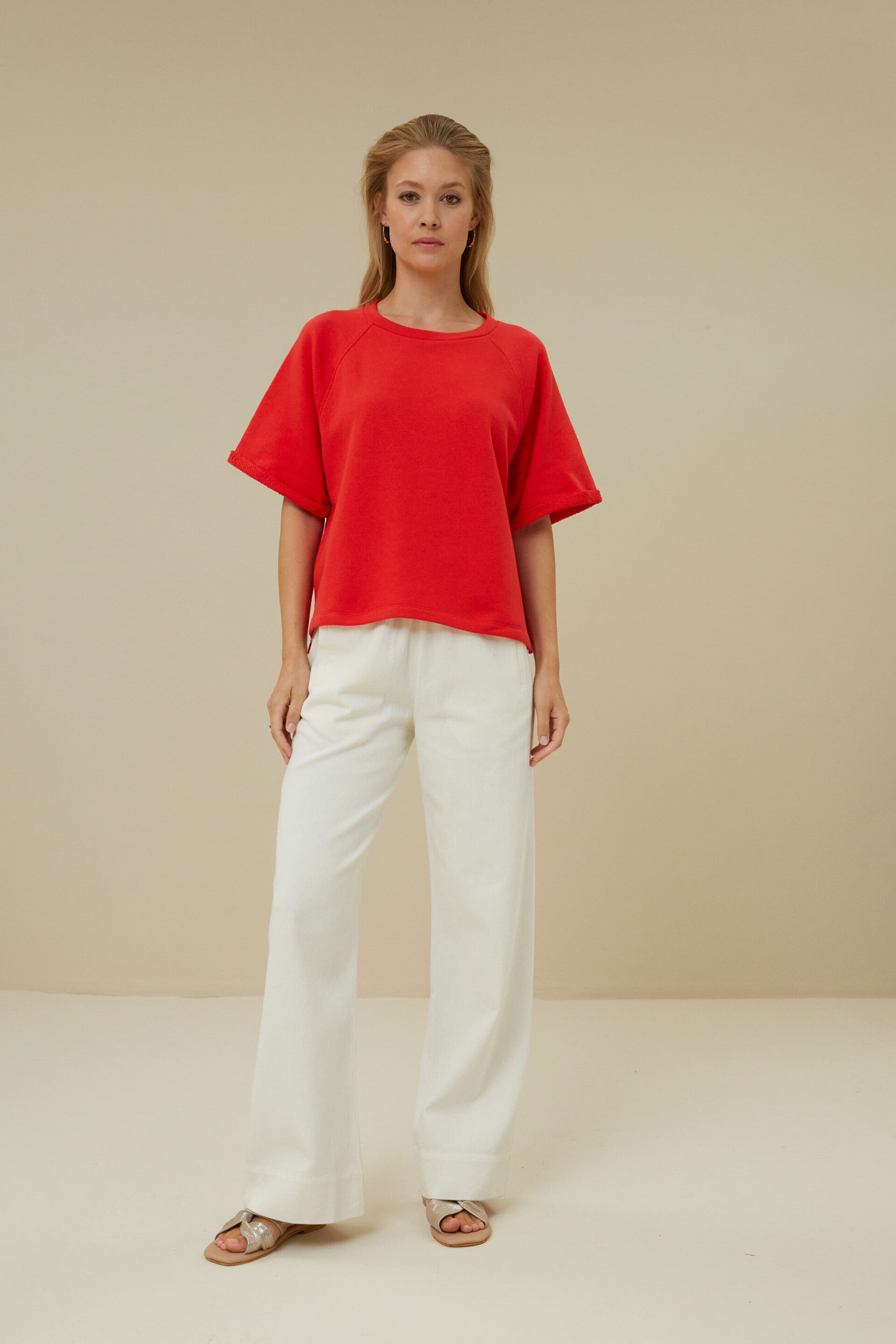 We zijn verliefd op deze fijne basic! Deze sweater is gemaakt van een zachte katoen kwaliteit, met een uitlopende fit, wijde mouwen en een ronde halslijn. Deze gemakkelijke sweat top draag je het hele seizoen door!