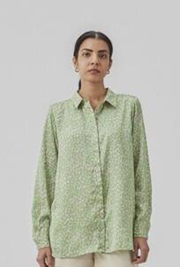 satijnglanzend overhemd met relaxte pasvorm en lange mouwen, kraag en knopen aan de voorkant. Dit hemdje heeft een prachtige print en is gemaakt van gerecycled polyester met smileyprint.
