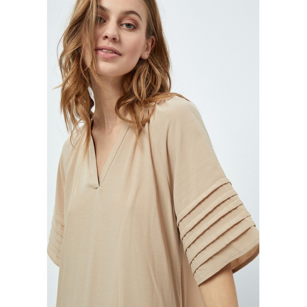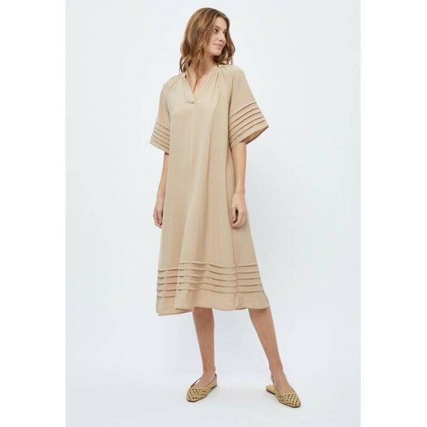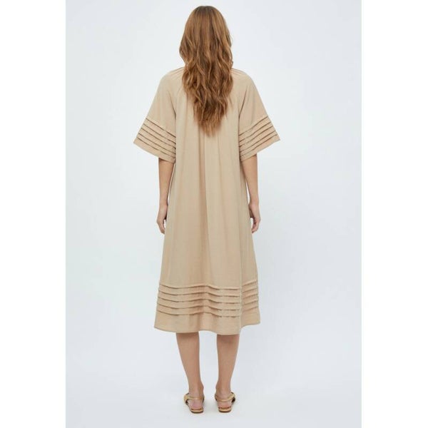 prachtige zandkleurige zomerse jurk met 2/4 mouwen.