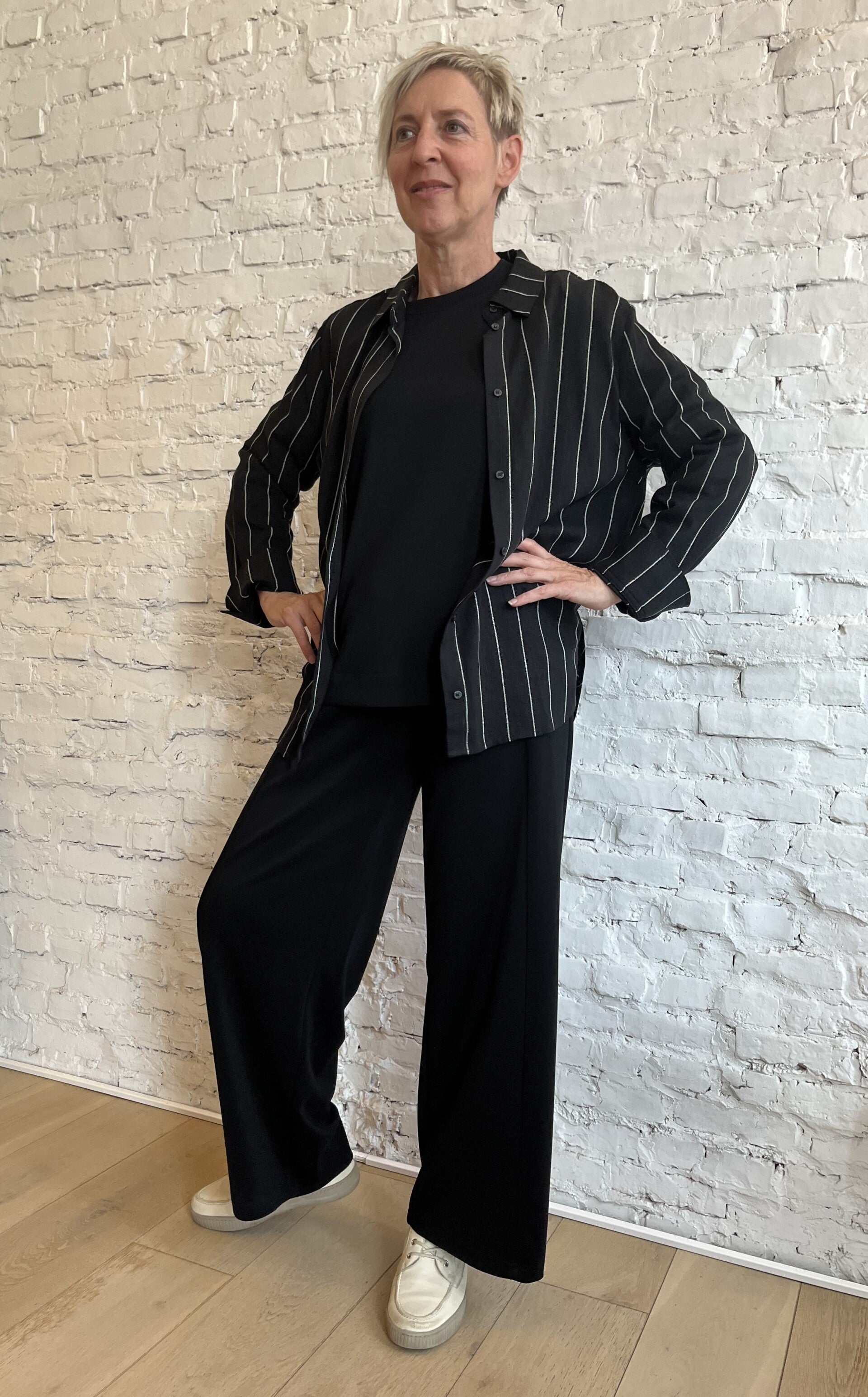 Dit stijlvolle gestreepte hemd kan je ook als vest dragen. Het heeft een mooie krijtstreep.