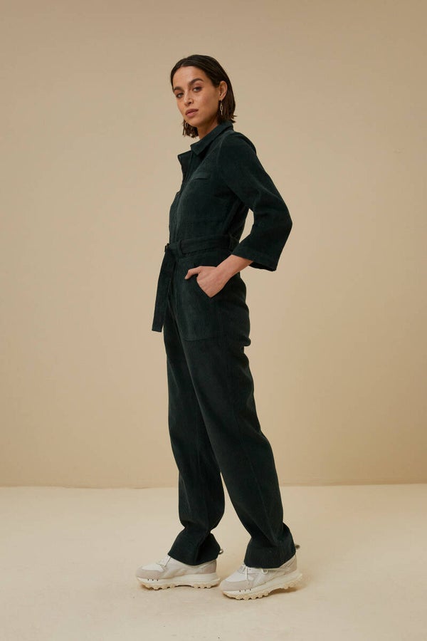 deze corduroy jumpsuit heeft een stoere look met een chic ontwerp. De kraag, rechte pijp en riem zorgen voor deze classy uitstraling. De jumpsuit heeft een driekwart mouw en een 100% katoen kwaliteit. Hij heeft een optimale pasvorm en creëert de perfecte go to look.
