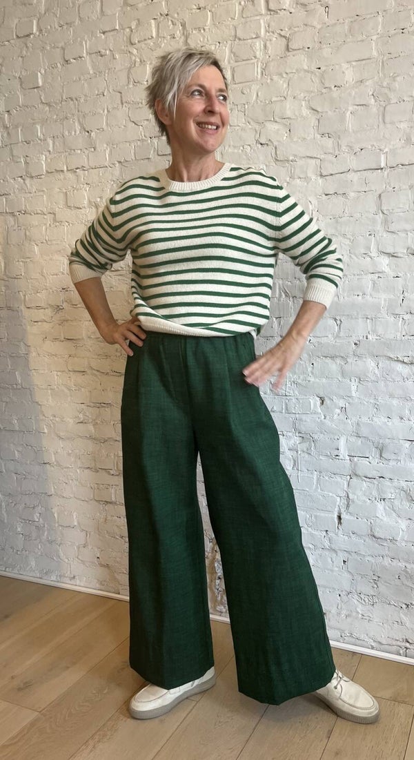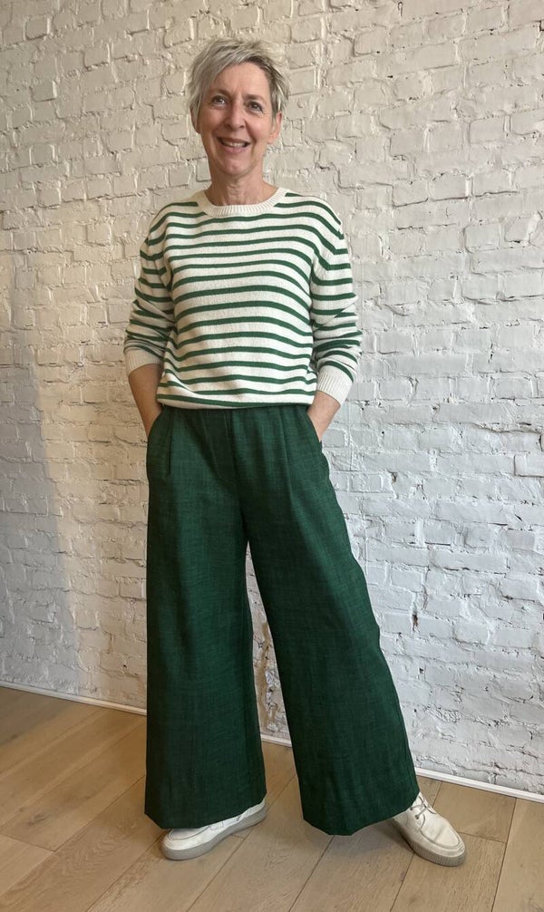 deze sfeervolle trui geeft een cozy en stoere touch aan je look. een combinatie van een zachte wolblend, relaxte & lichte oversized fit en elegant streepdessin. De pullover combineert perfect met jouw favoriete jeans of op deze stijlvolle groene broek
