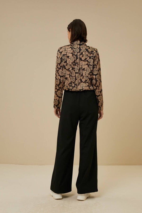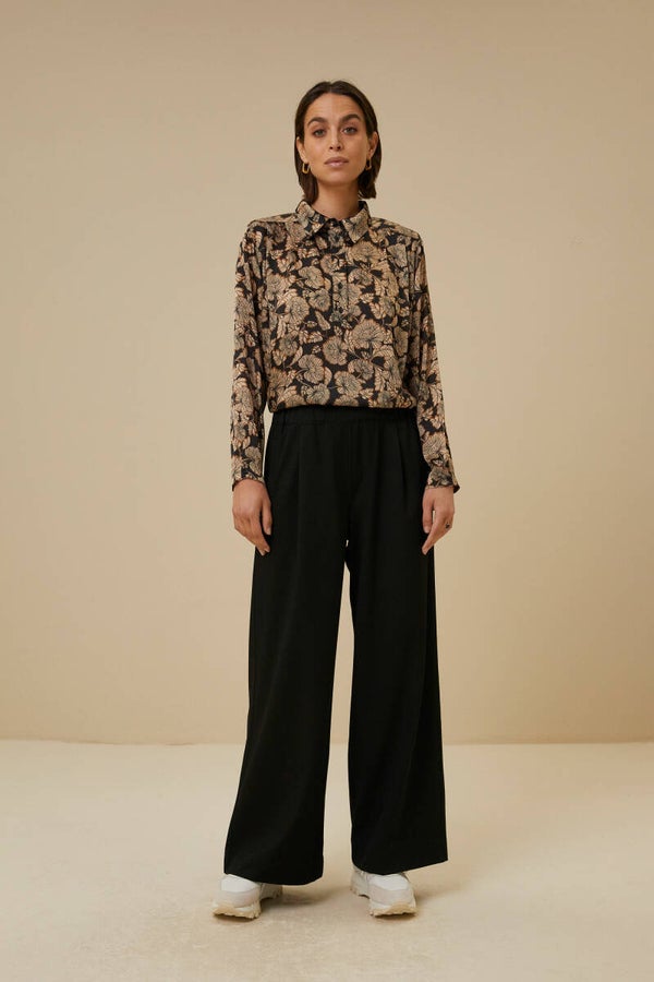 licht, romantisch, elegant en stoer tegelijkertijd, dat is deze blouse. Hij kenmerkt zich door zijn bloemenprint, schoudervulling, kraag, knoopsluiting en een elastieken boord aan de onderzijde van de blouse. De blouse heeft een subtiele glans, waardoor je hem ook zeer feestelijk kan dragen.
