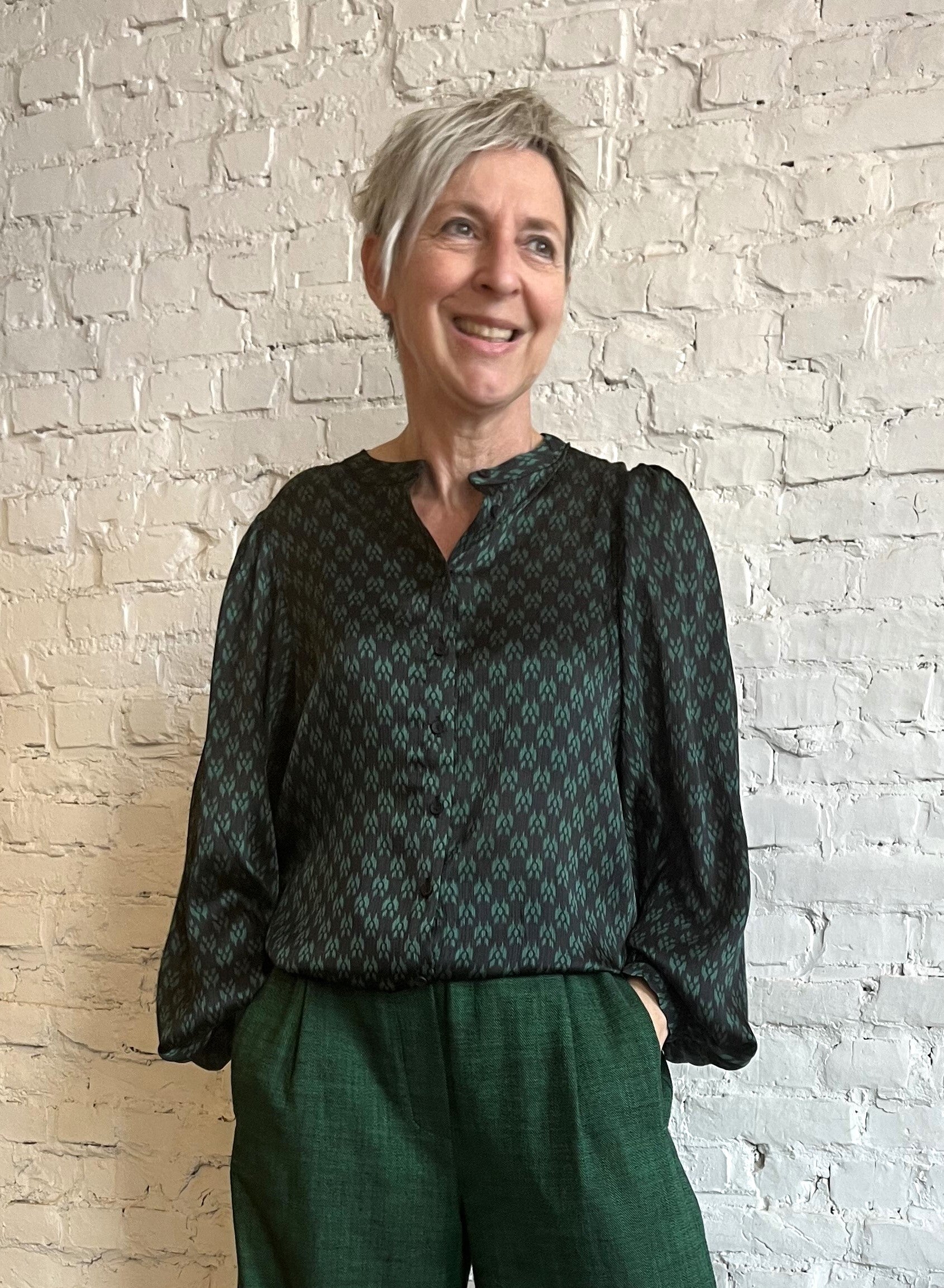 krachtige groene blouse met ballonmouwen