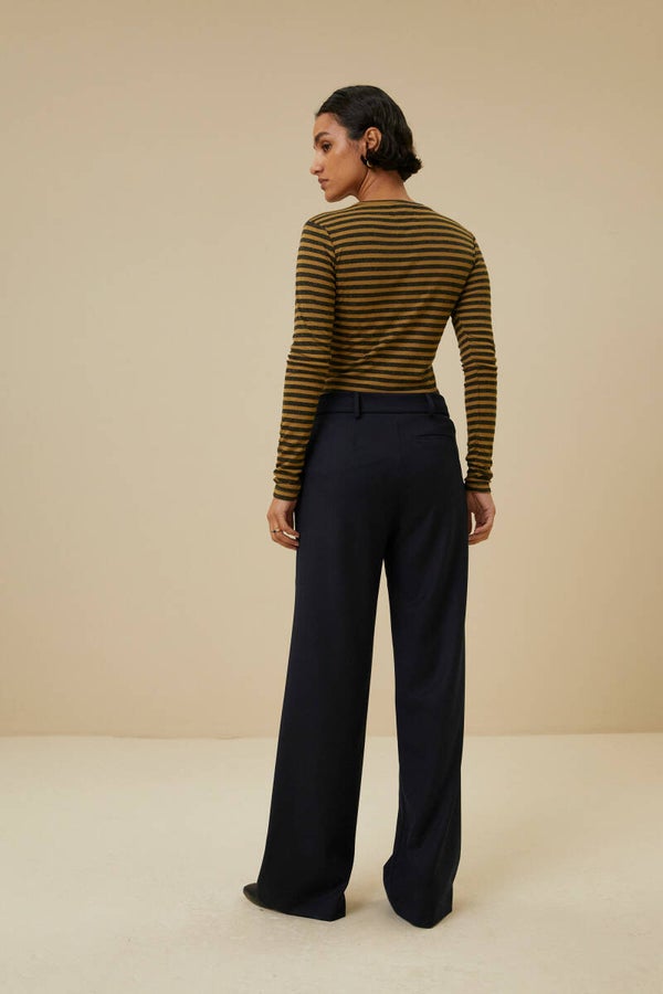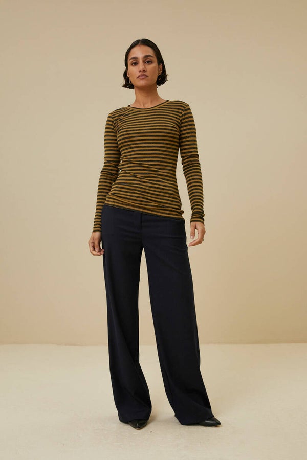 super zachte strepen t-shirt met lange mouwen in dry kaki