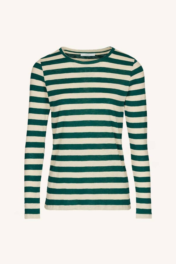 Deze comfy top is gemaakt van 100% organische katoen kwaliteit. De top heeft een aansluitende pasvorm, is voorzien van een gestreept dessin en heeft lange mouwen. Daarnaast heeft de top een ronde halslijn met een smal boord.