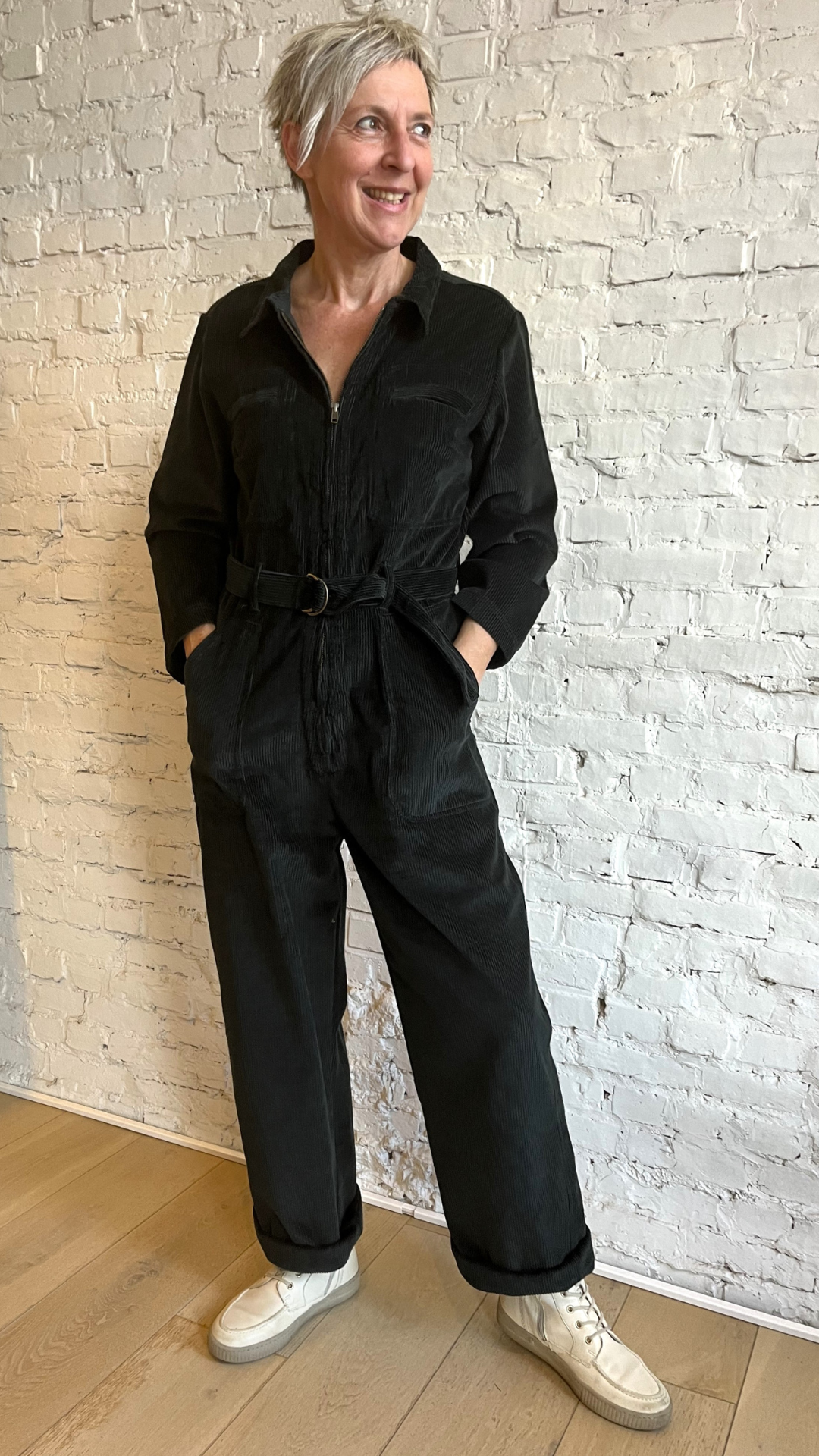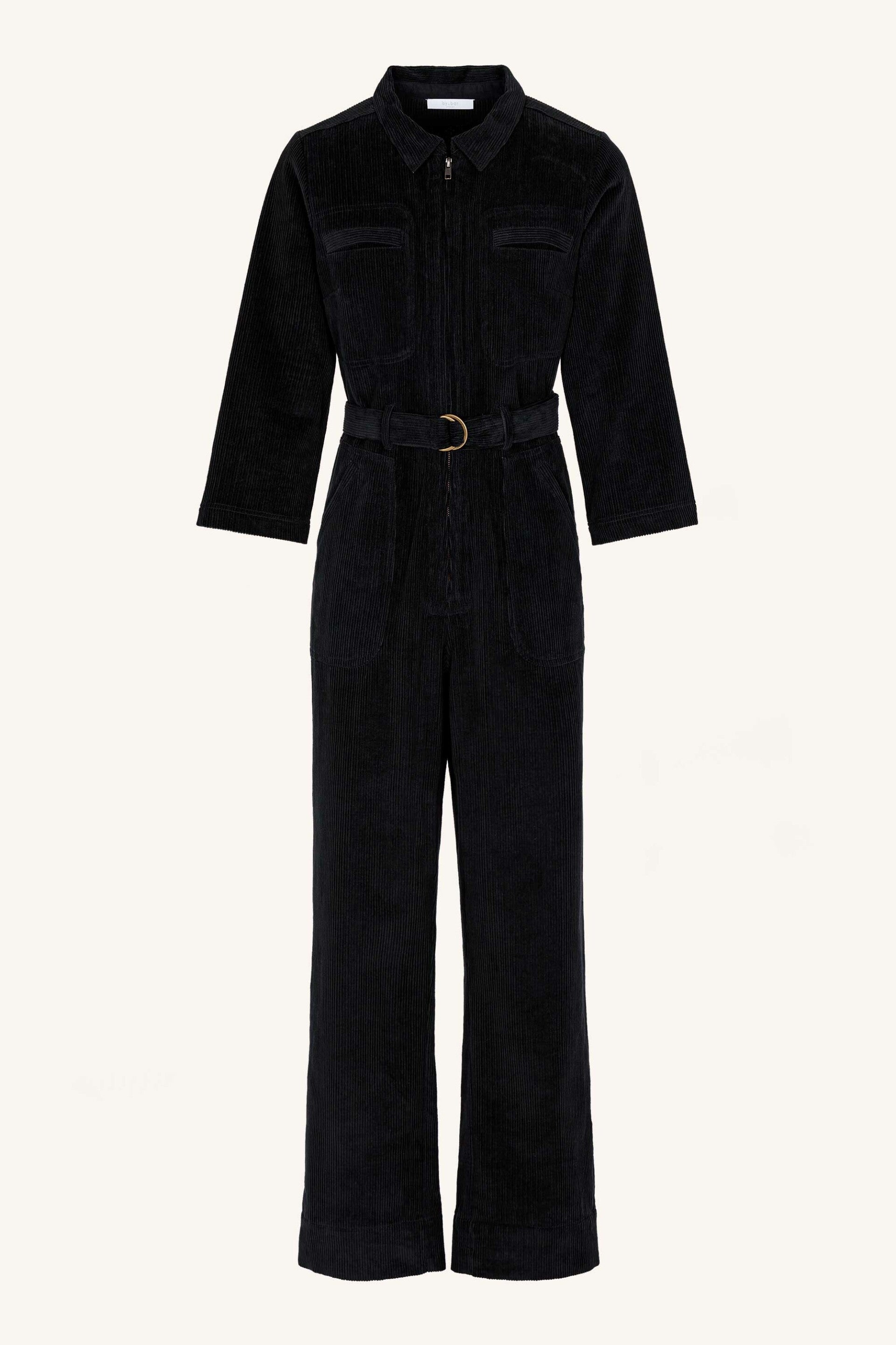 deze corduroy jumpsuit heeft een stoere look met een chic ontwerp. De kraag, rechte pijp en riem zorgen voor deze classy uitstraling. De jumpsuit heeft een driekwart mouw en een 100% katoen kwaliteit. Hij heeft een optimale pasvorm en creëert de perfecte go to look.