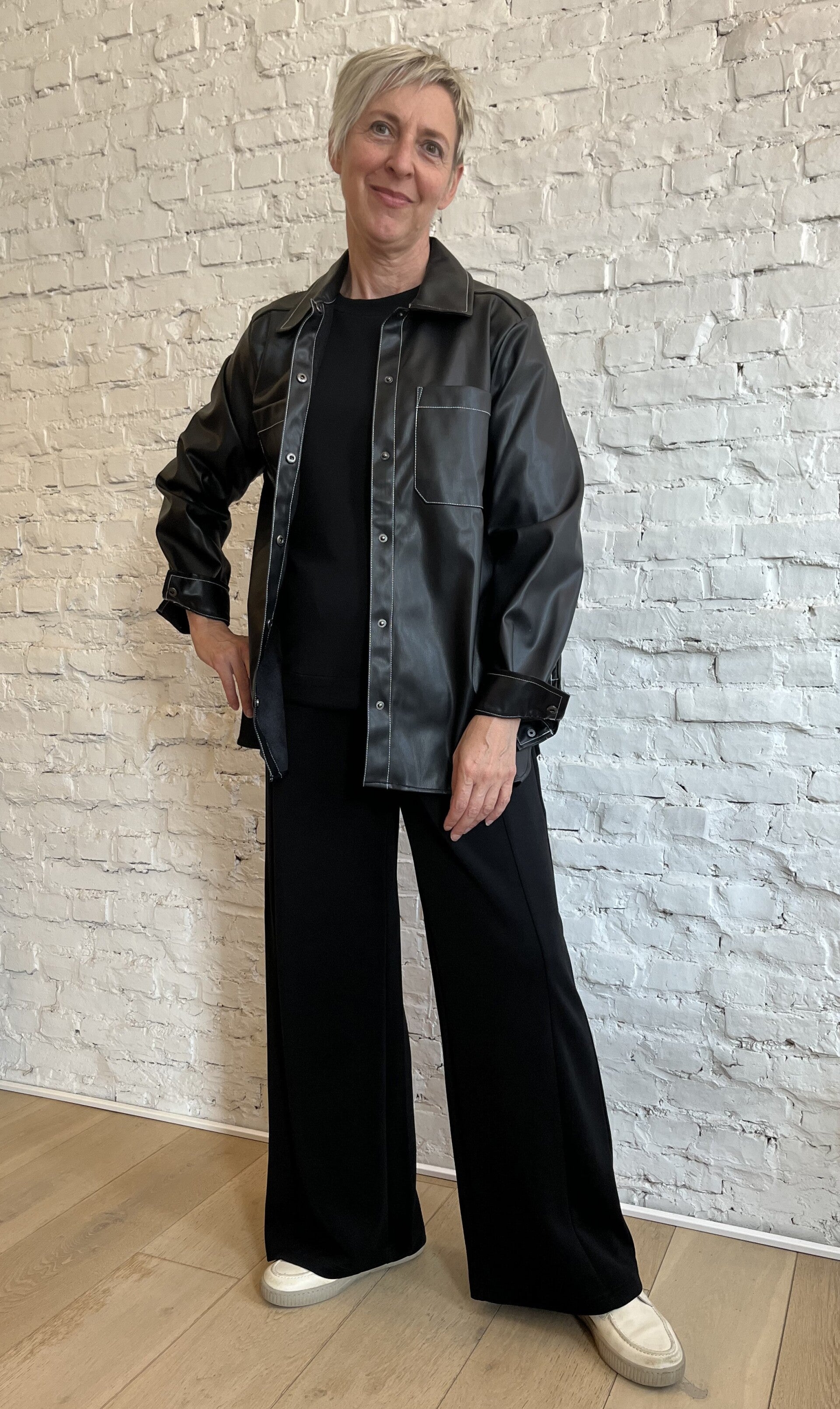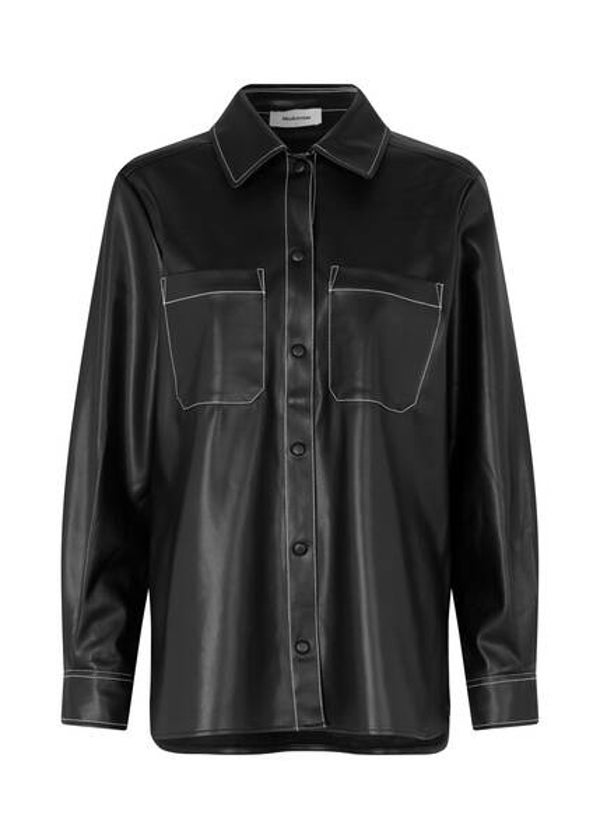 Oversized overhemd / vets van kunstleer met kraag, met stof beklede knopen en twee grote borstzakken. Het shirt / vest is gedetailleerd met contrasterende stiksels.