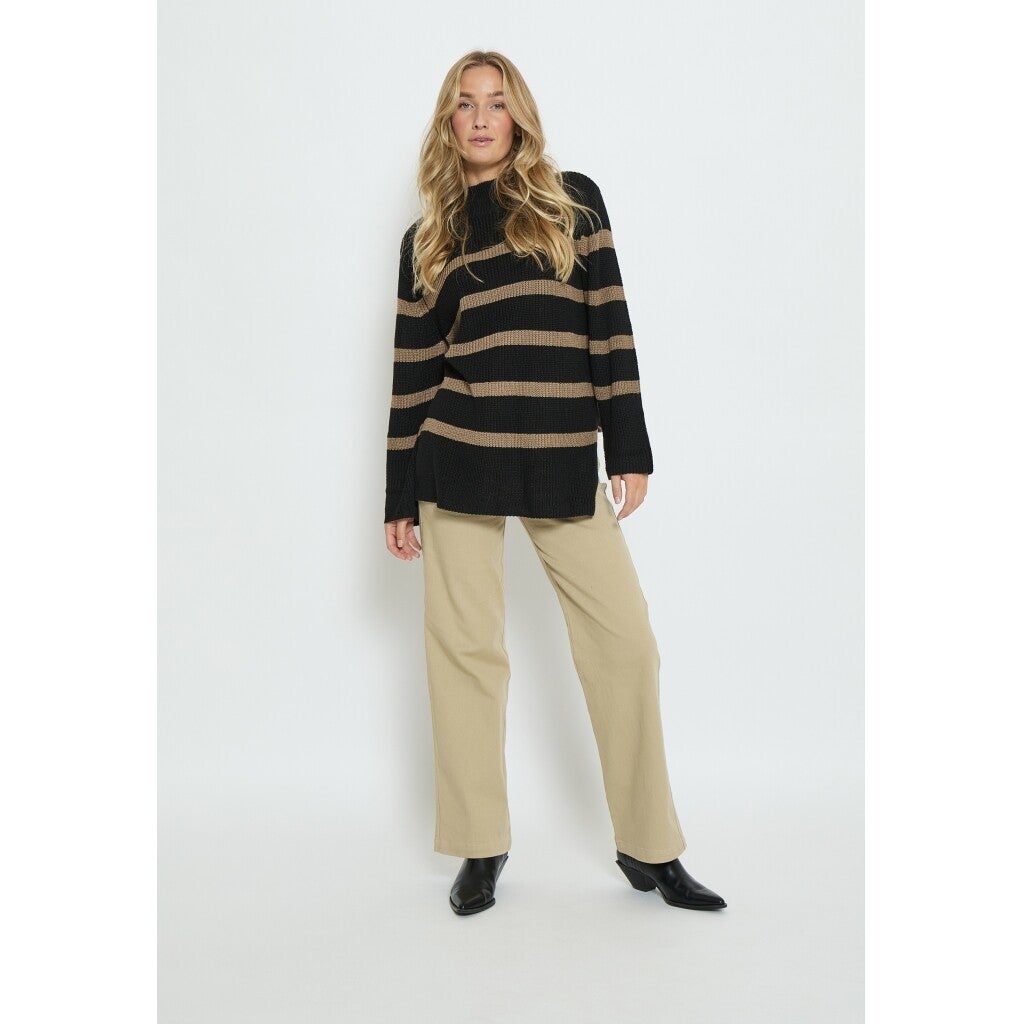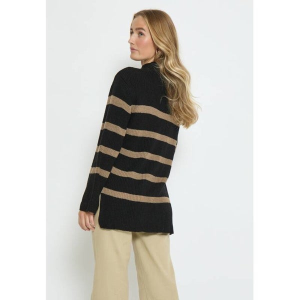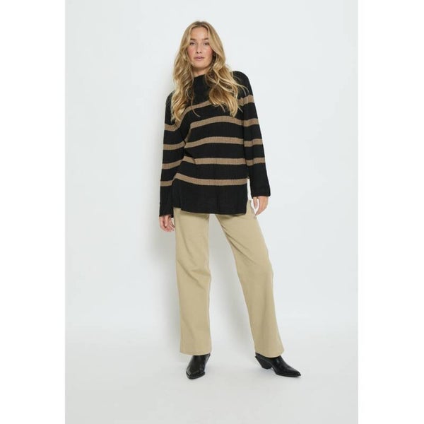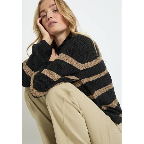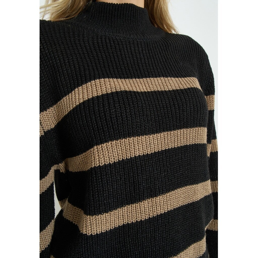 Zwarte trui met bruine strepen. Prikt niet!!!