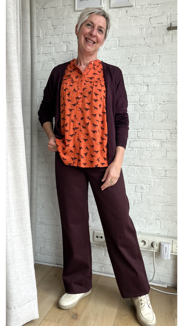 Stijlvolle blouse met knoopsluiting en korte opstaande kraag in prachtige print. Dit losser vallende model is gemaakt van zachte rayon chiffon en heeft wijde mouwen met gesmokt manchet.