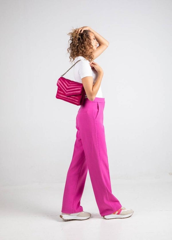stijlvolle fuchsia lederen handtas