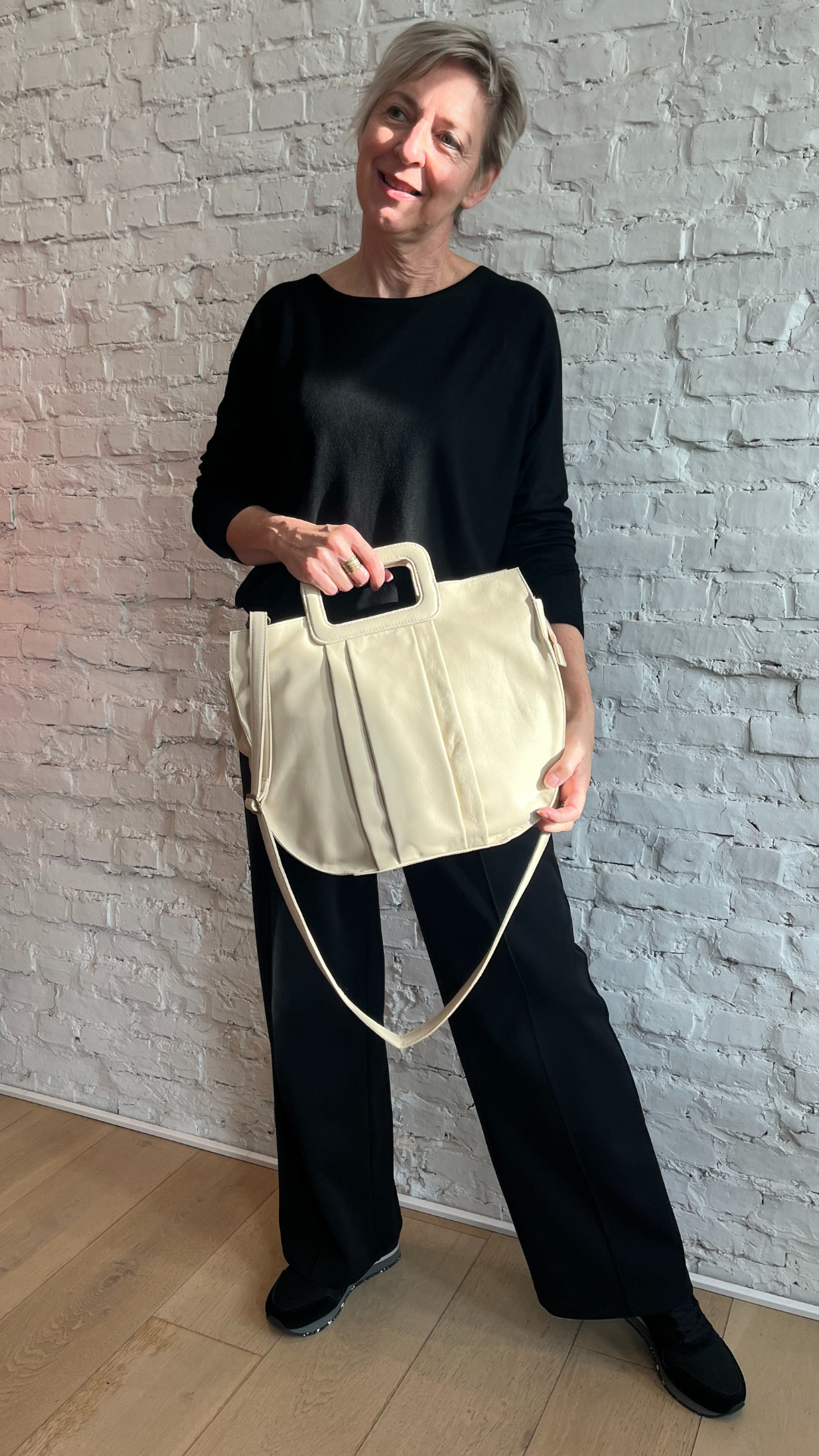 stijlvolle crèmekleurige handtas met fachionable handtas en extra schouderriem