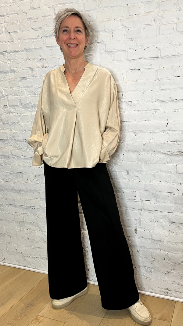 Stijlvolle blouse met v-hals. de blouse heeft een lichte glans waardoor je hem ook feestelijk kan stylen