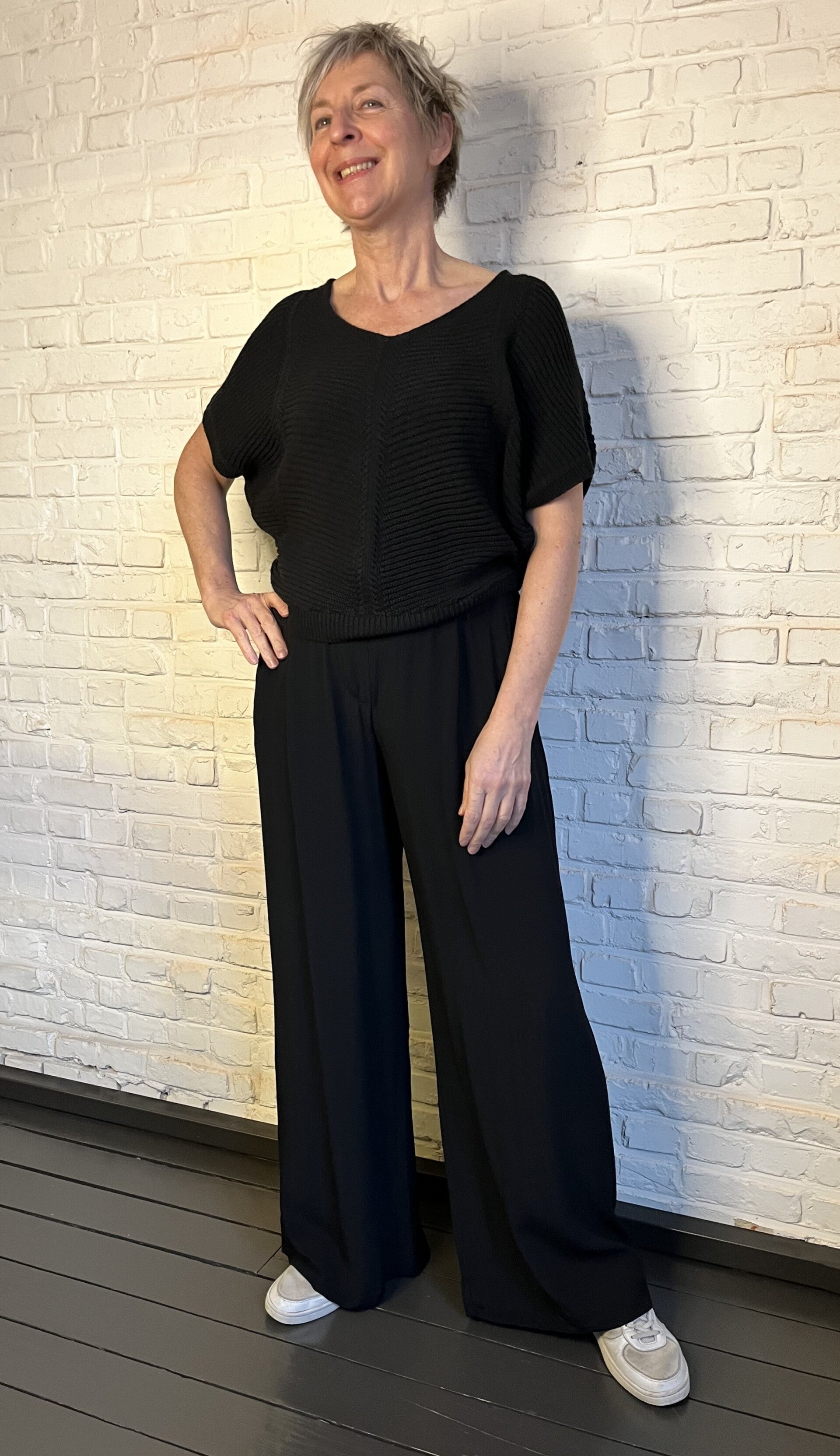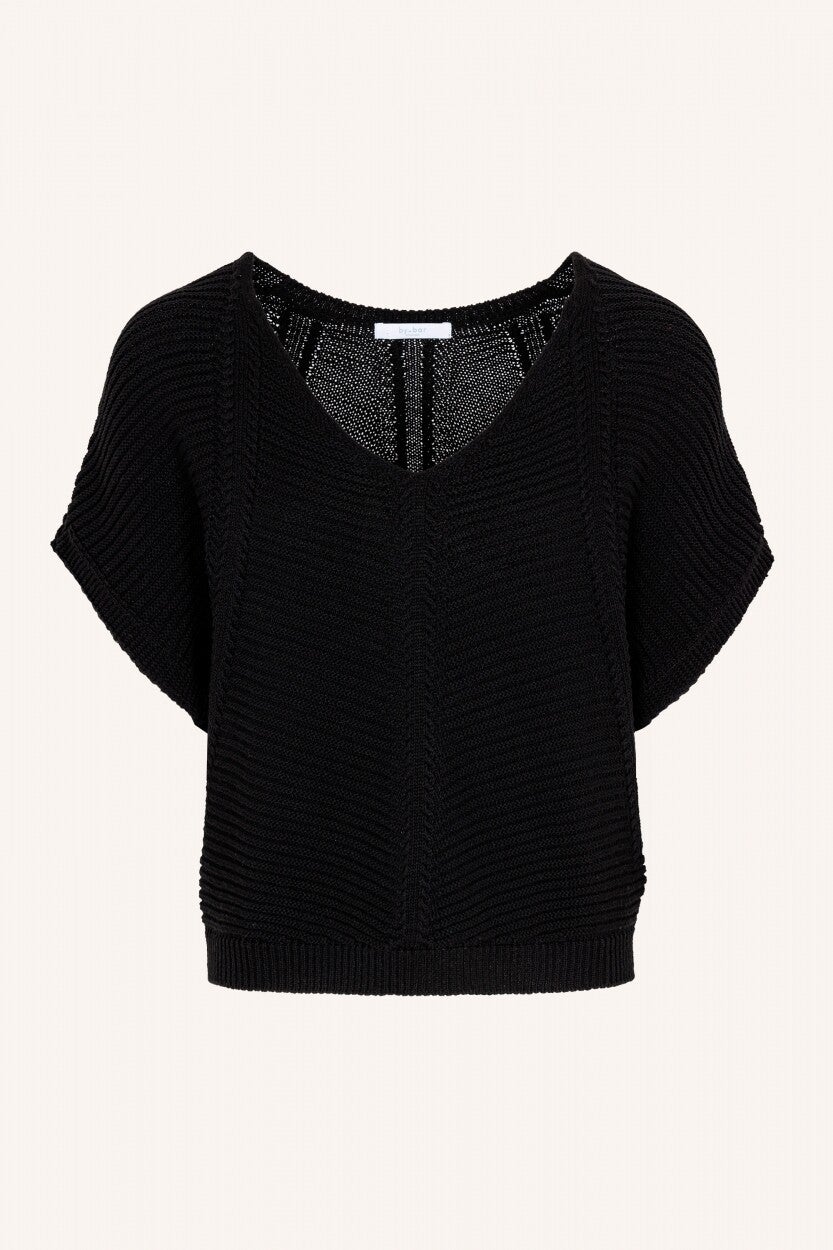 Deze gebreide top is vervaardigd uit een gerecyclede katoen blend. De top heeft een rechtvallende pasvorm met een minimalistisch look and feel die niet mag ontbreken in je garderobe. Het uitgewerkte breipatroon en de vrouwelijke v-halslijn geven de top een extra touch.