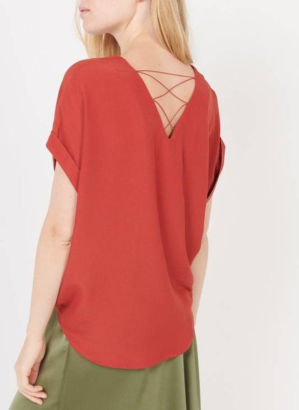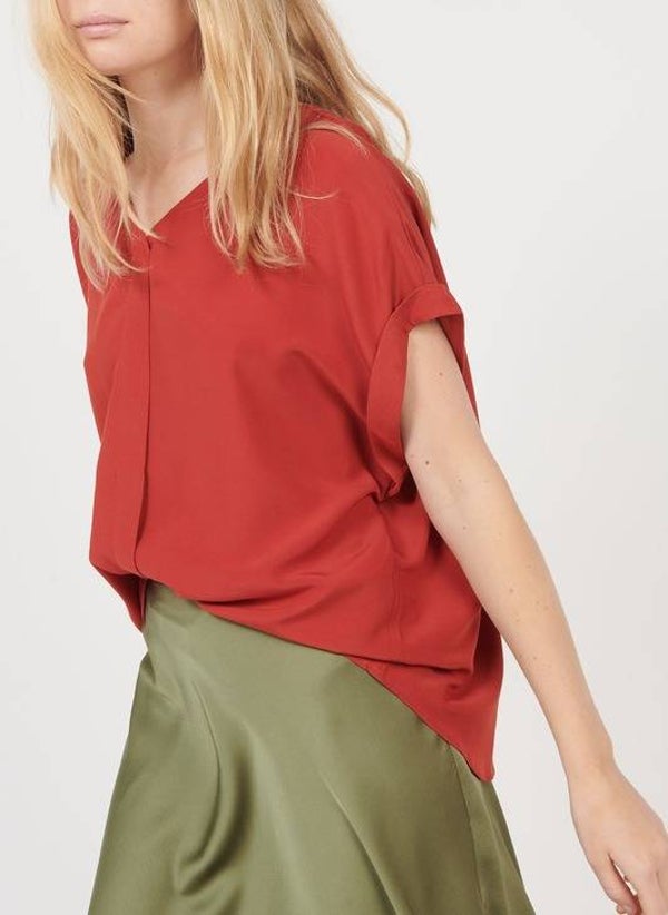 roestrode blouse met korte mouwen