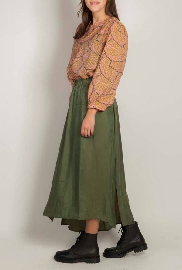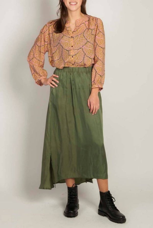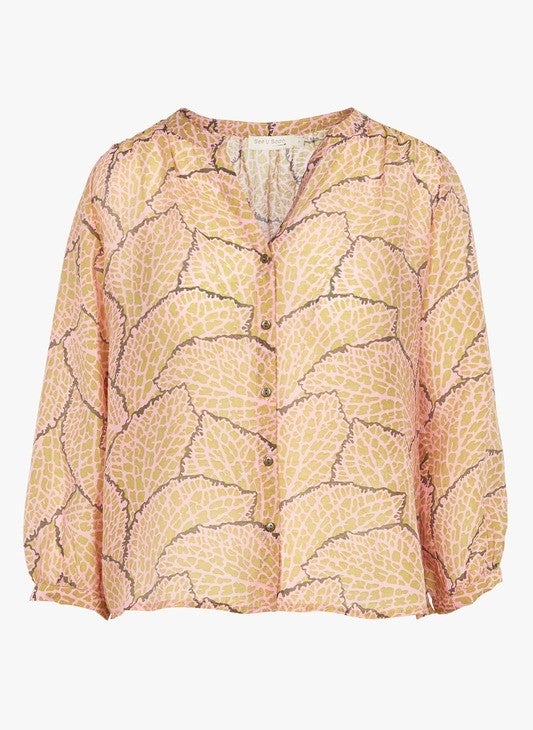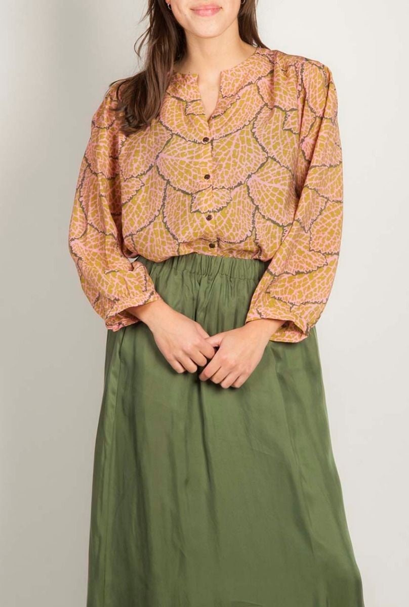 blouse met roze/kaki motief