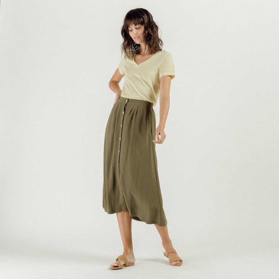 kaki rok met knopen