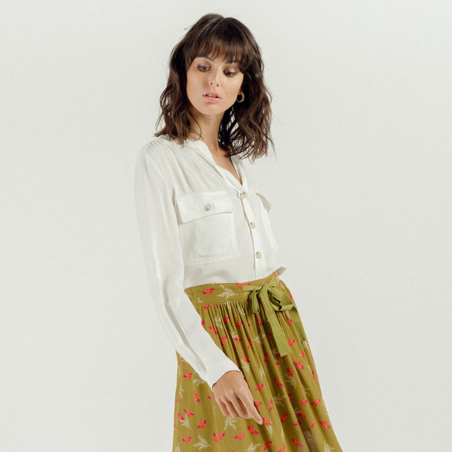• Casual overhemd.• Lange mouwen.• Borstzakdetail.• V-hals