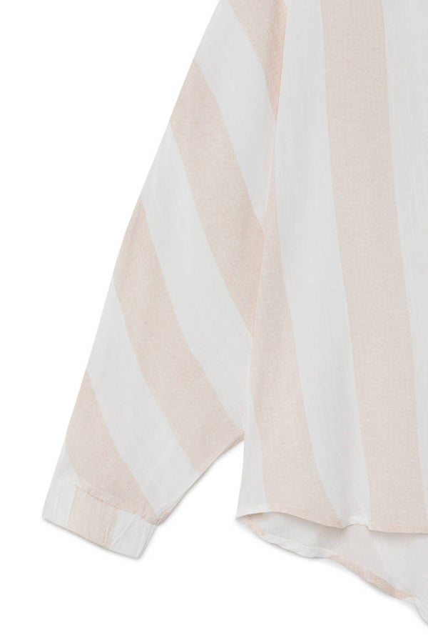 Oversized blouse met beige strepen. De blouse heeft een t-shirt hals en de stof valt heel soepel.Samenstelling: 100% viscose