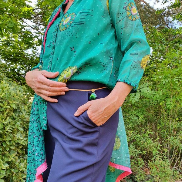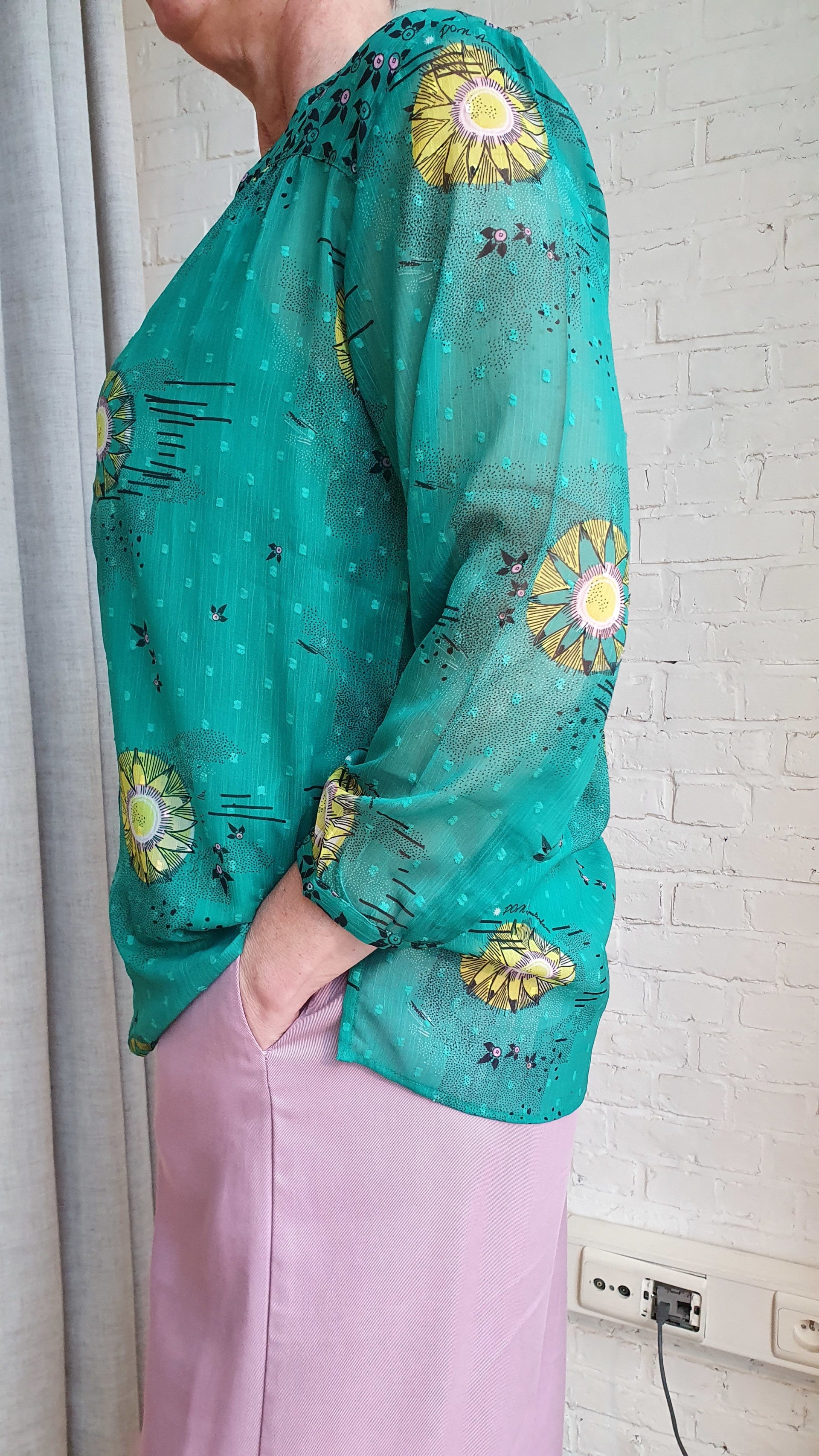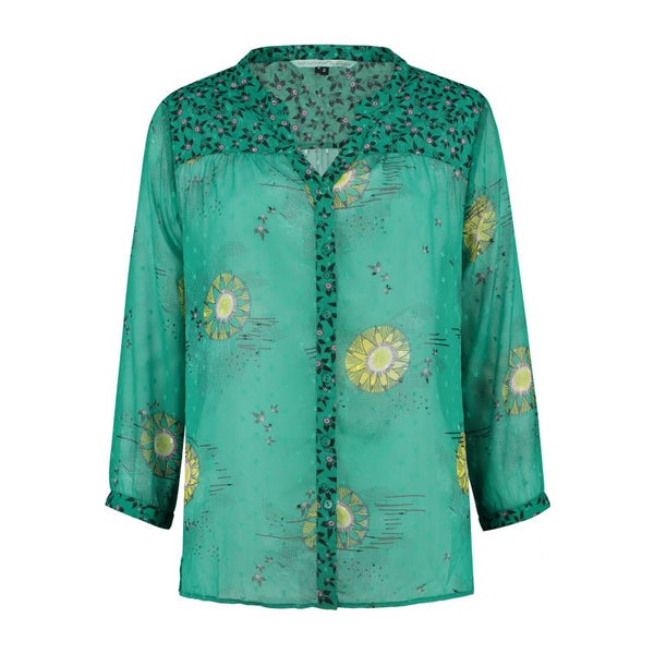 dunne groene blouse met gele print