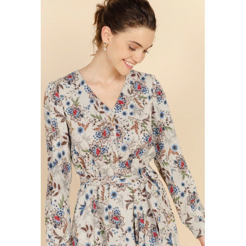 • V-hals. • Bloemenprint. • Lange mouwen.