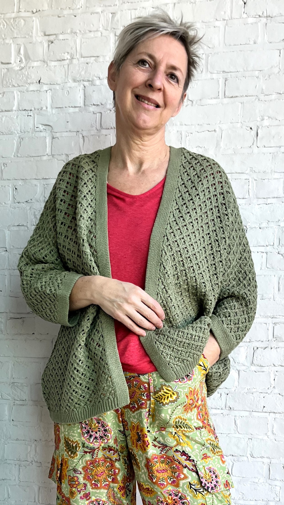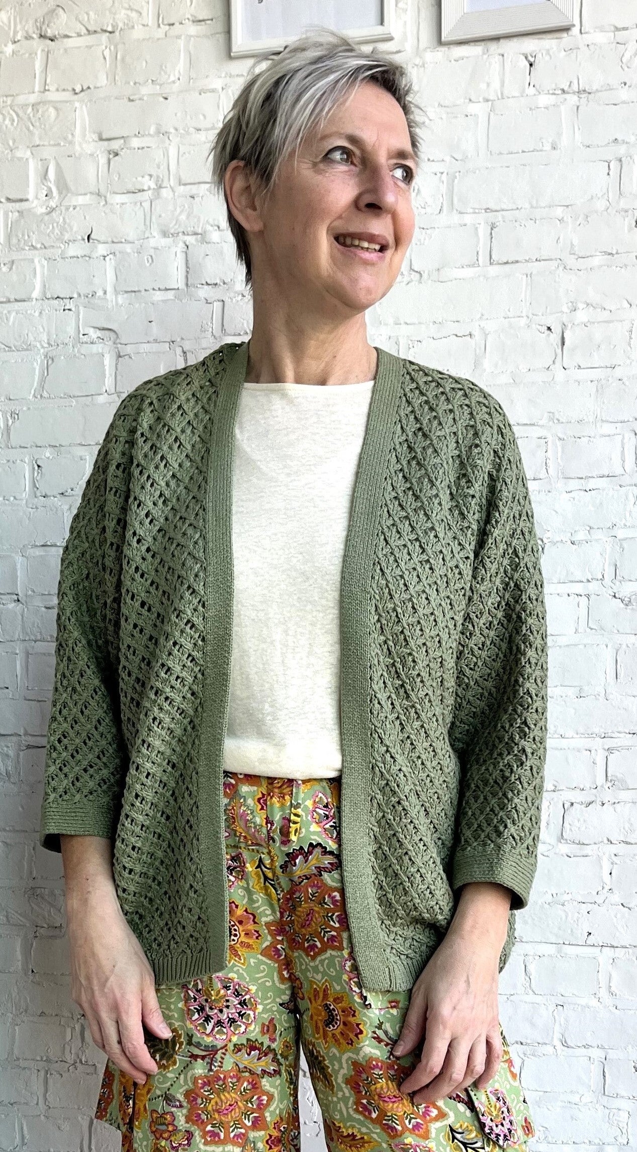 prachtige tijdloze kaki katoenen cardigan