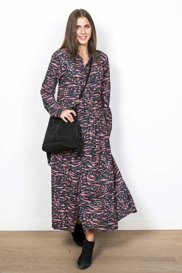 Maxi jurk met zebra print, Materiaal: 70% viscose, 30% polyester, Kleur: zwart/rose