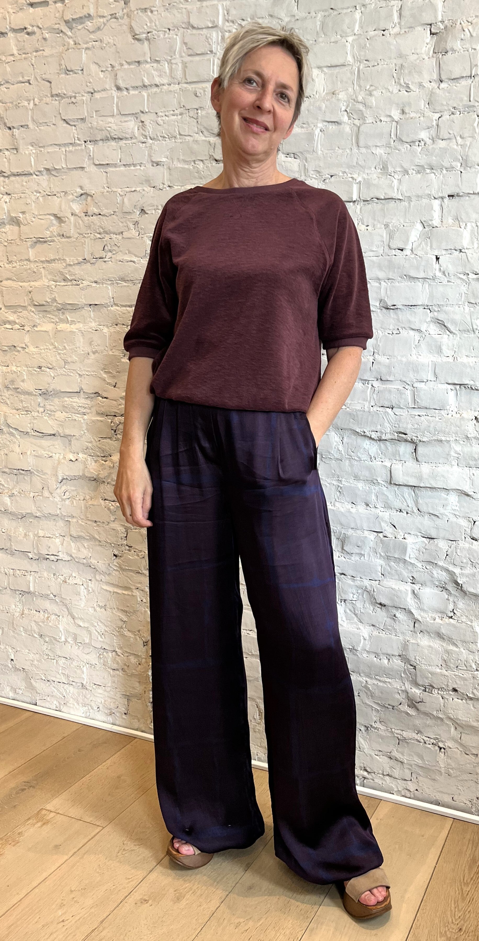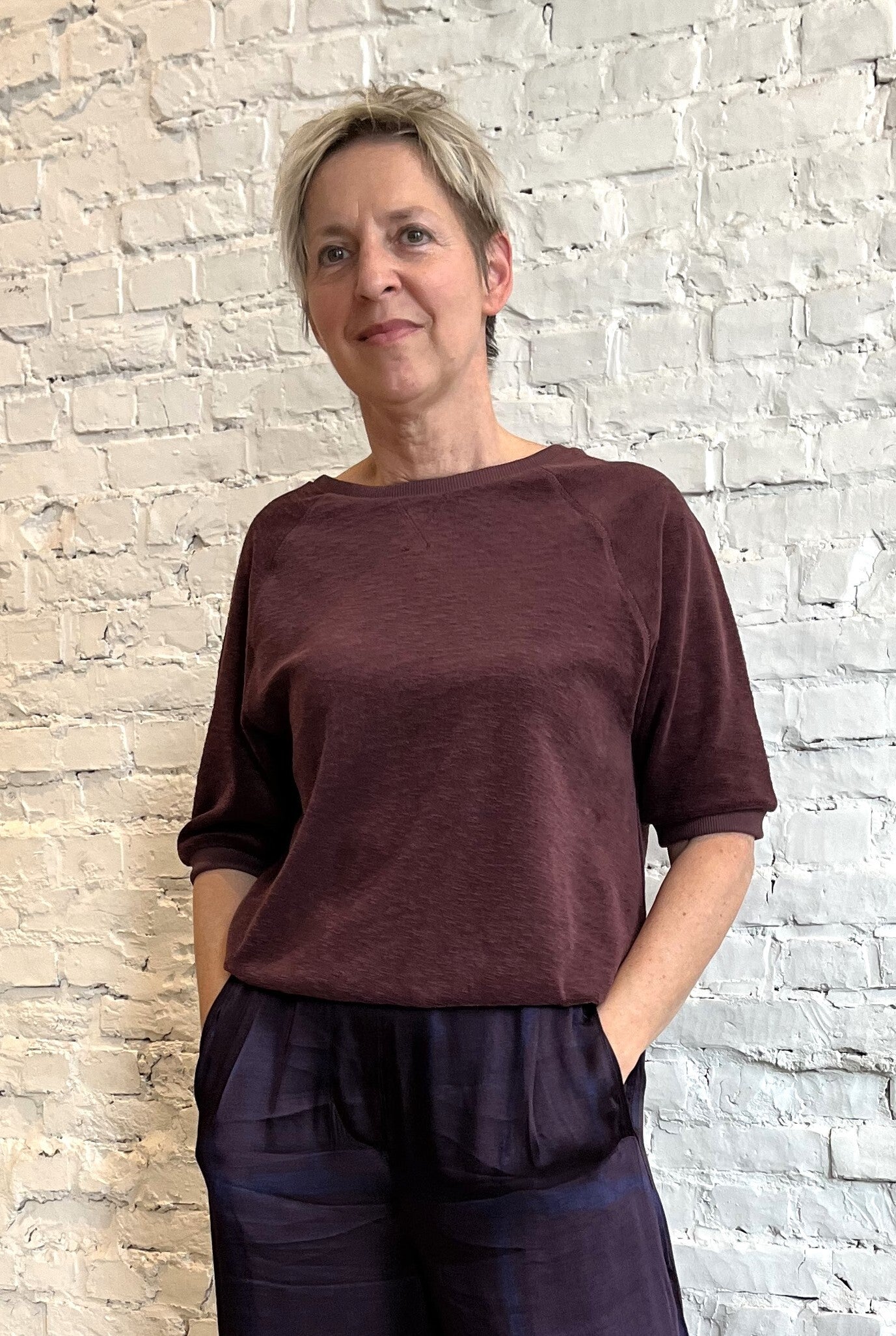 Comfortabele top met een ronde halslijn. De top heeft een korte mouw en is afgewerkt met een rib boord aan zowel de onderkant van de mouwen als aan de onderkant van de top. Daarbij zit er een splitje aan beide zijkanten van de top. De top is gemaakt van een fijne blend van biologisch katoen en gerecycled polyester en is een echte must-have essential.