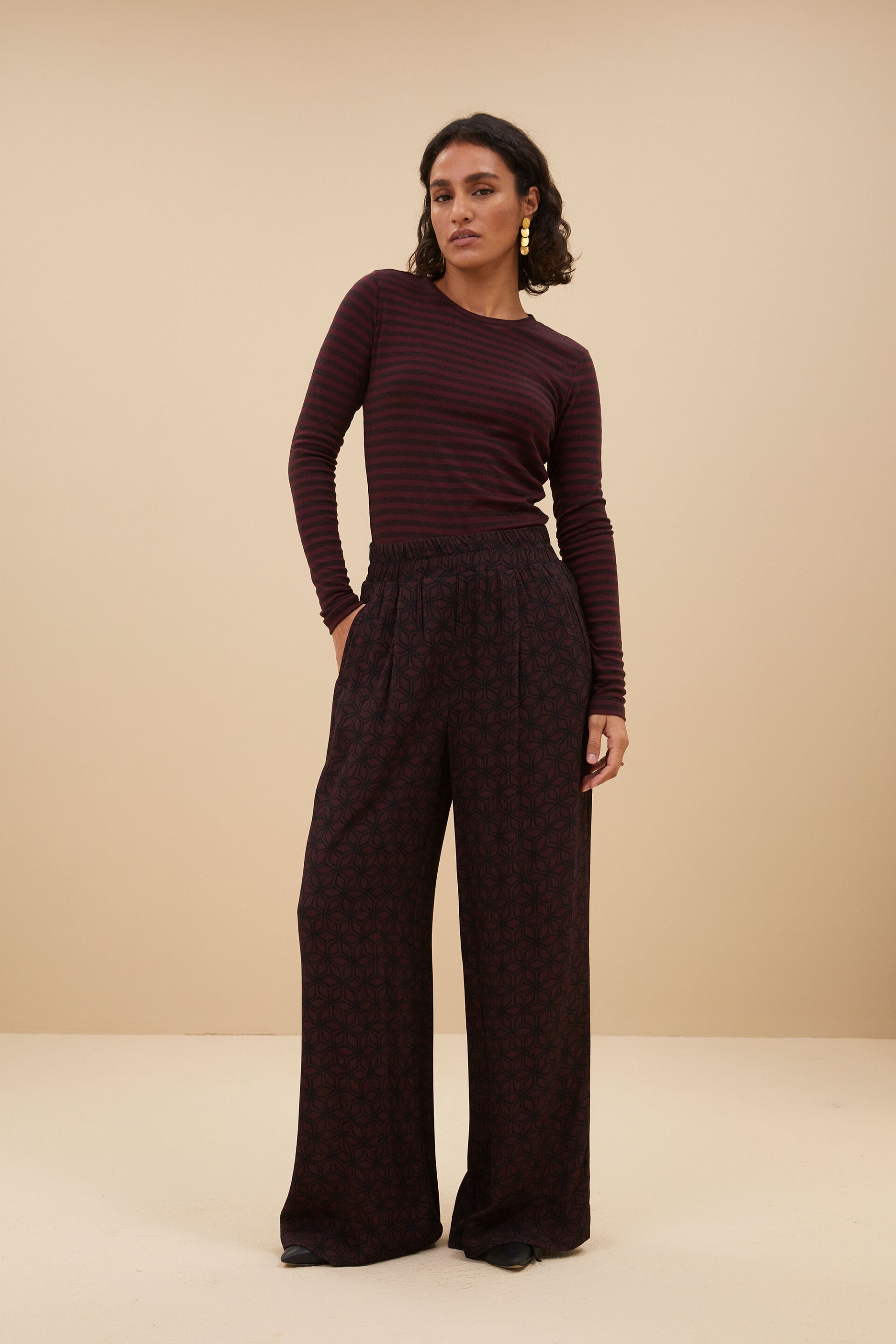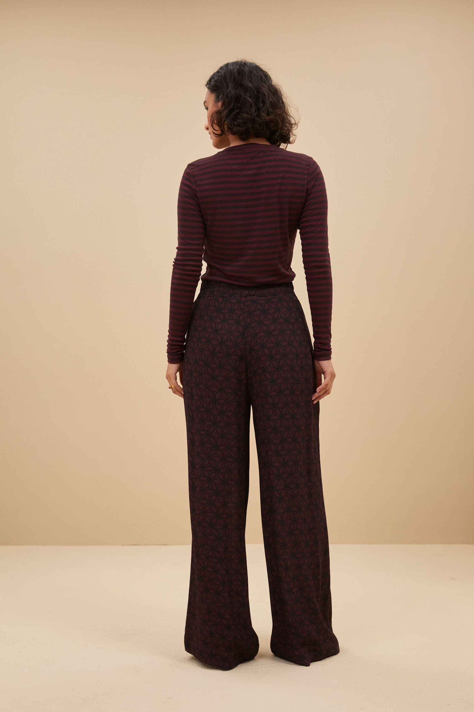 Deze heerlijke broek geeft een elegante touch aan je outfit. De broek is gemaakt van een zachte viscose kwaliteit. Het soepele materiaal zorgt voor een elegante zachtheid, waar de all-over print voor een vleugje speelsheid zorgt. Verder heeft de broek een losvallende pasvorm en een elastieke band in de taille. Combineer de high waisted contiki broek moeiteloos met onze erin contiki blouse voor een full printed look.