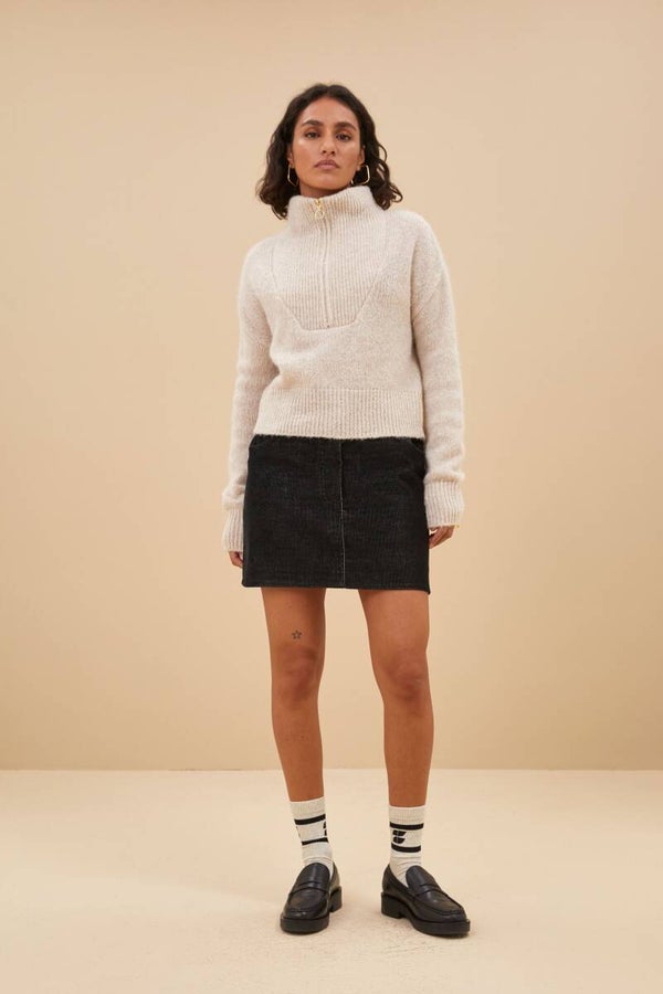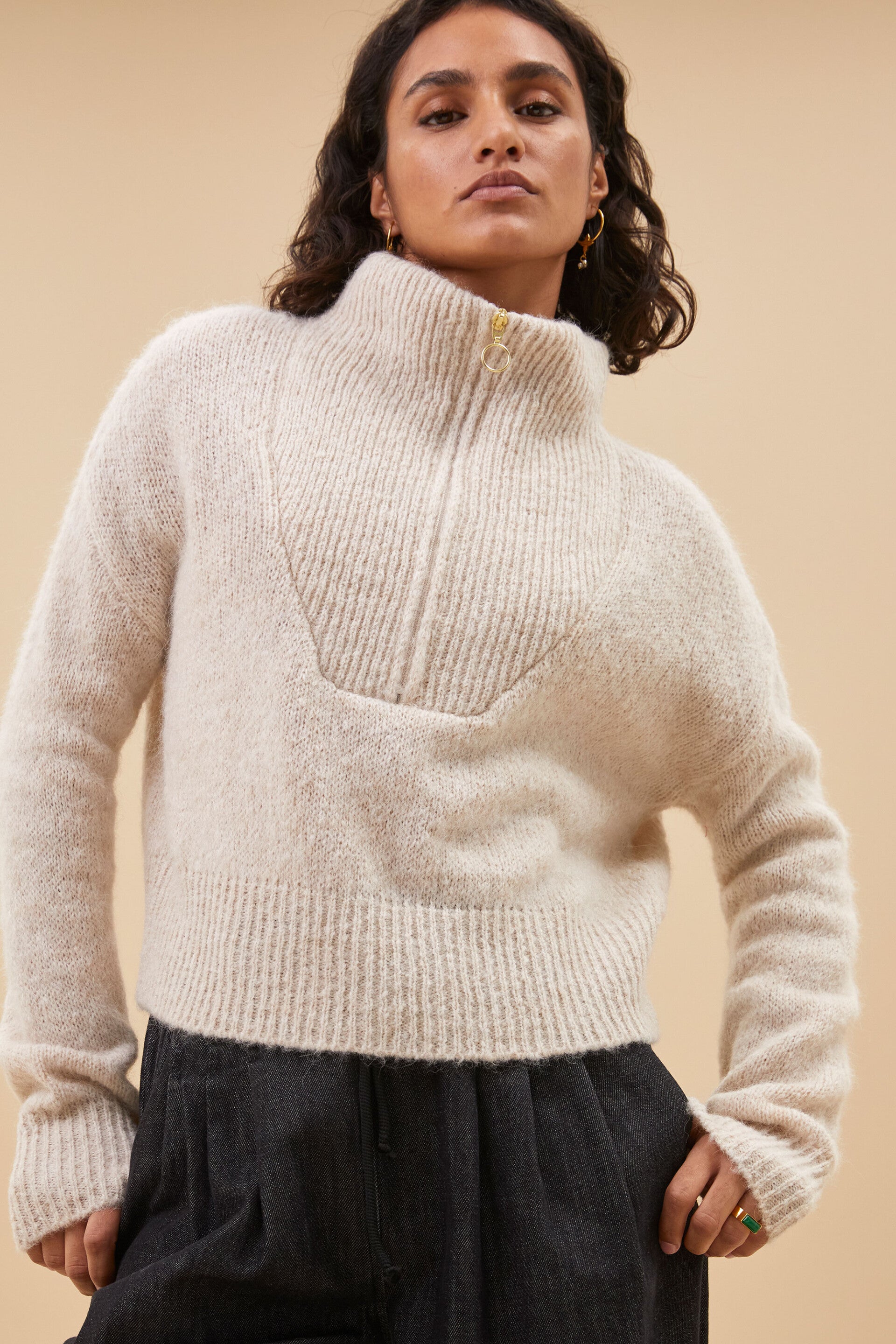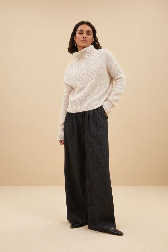 chique kalkkleurige trui met rits