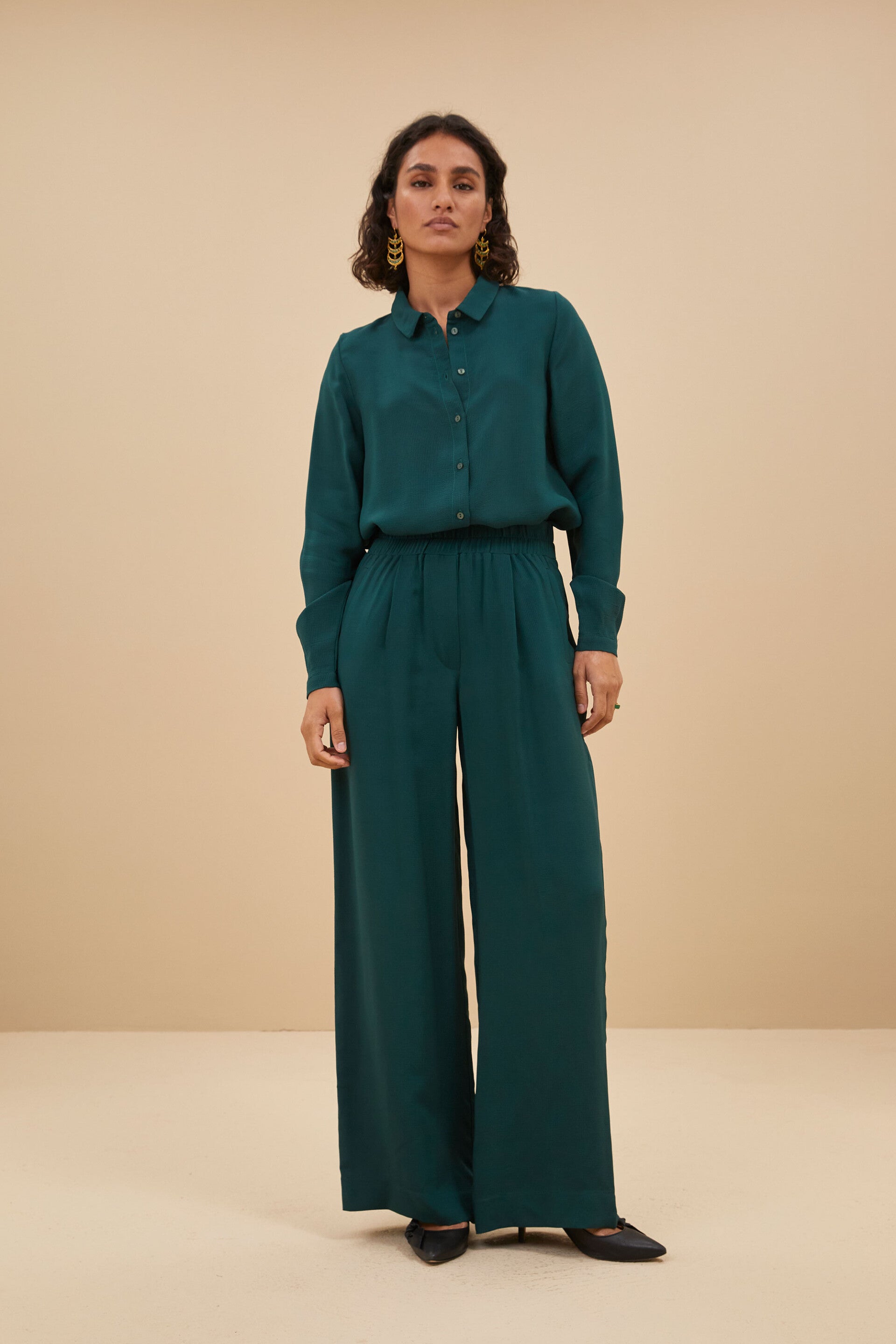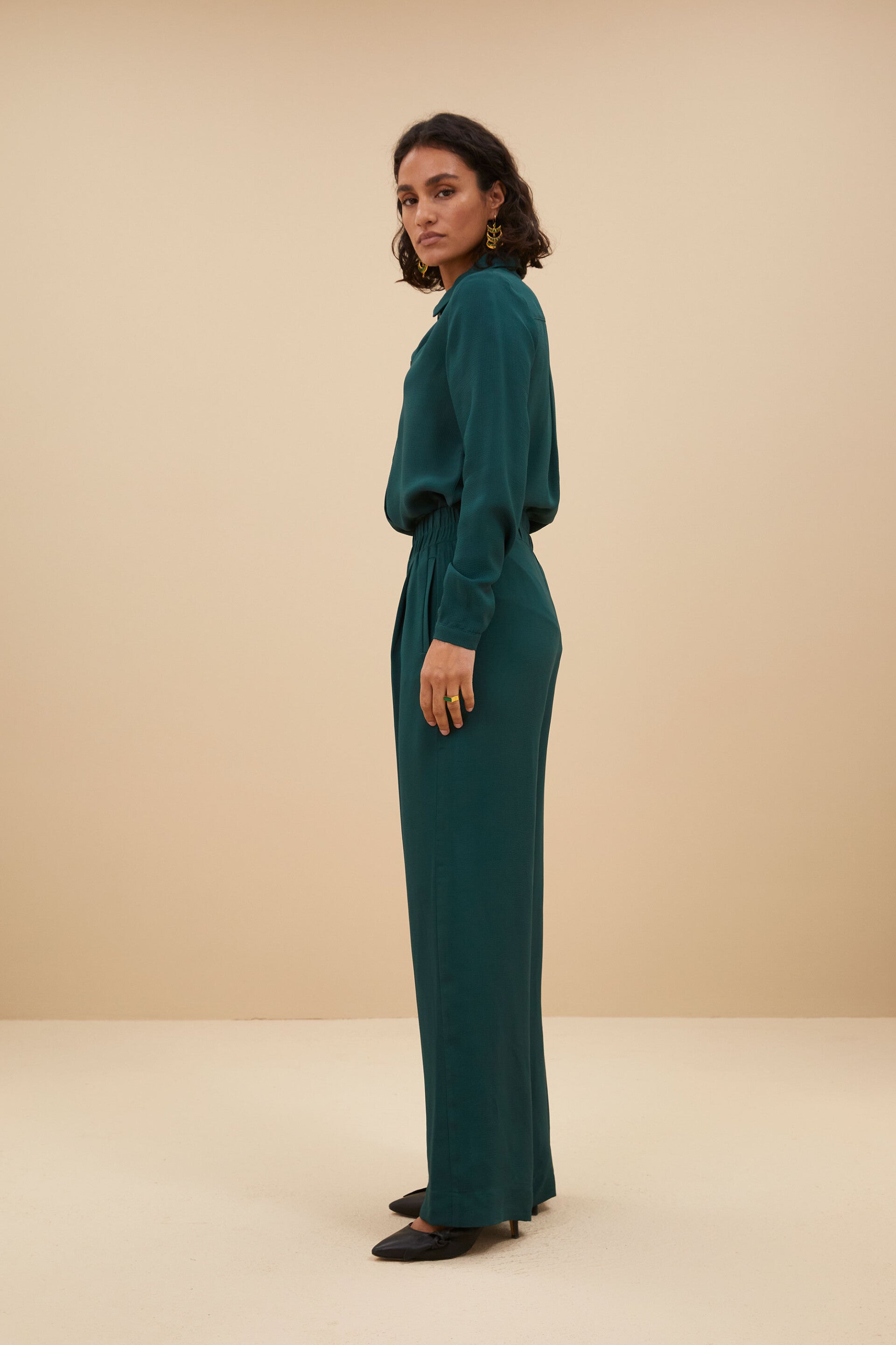 Chic layering with our stylish pants! Dat schreeuwt deze mooie satin stripe pants. De broek heeft een hoge elastische tailleband, plooien aan de voorkant en wijde broekspijpen. Ga voor een ton sur ton look met de bijpassende blouse.