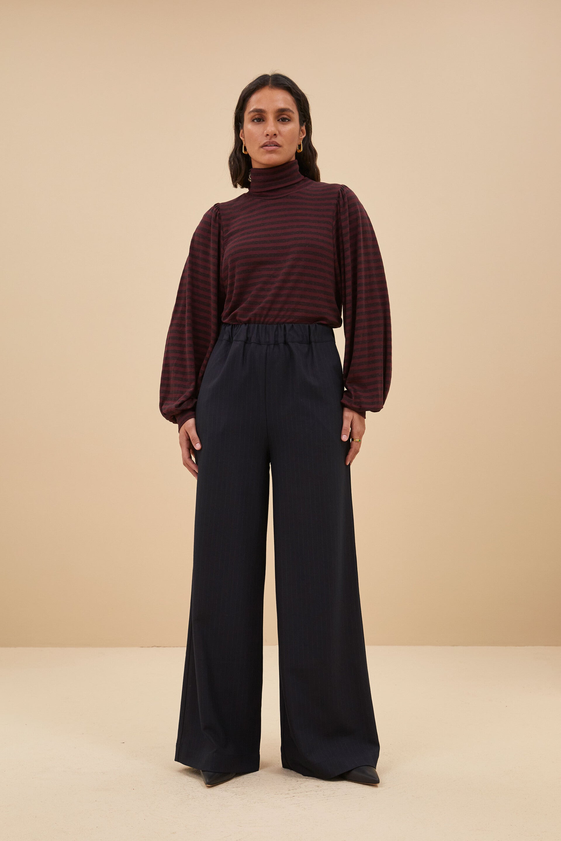 Sophistication meets comfort! Deze blauwe broek met krijtstreep heeft een hoge taille en los vallende pasvorm voor het ultieme comfort. De broek is voorzien van casual zijzakken en een elastieken band in de taille. De broek is een absolute must-have voor dit winter seizoen! Draag het samen met een leuke trui, sweater of blouse voor een stijlvolle set.