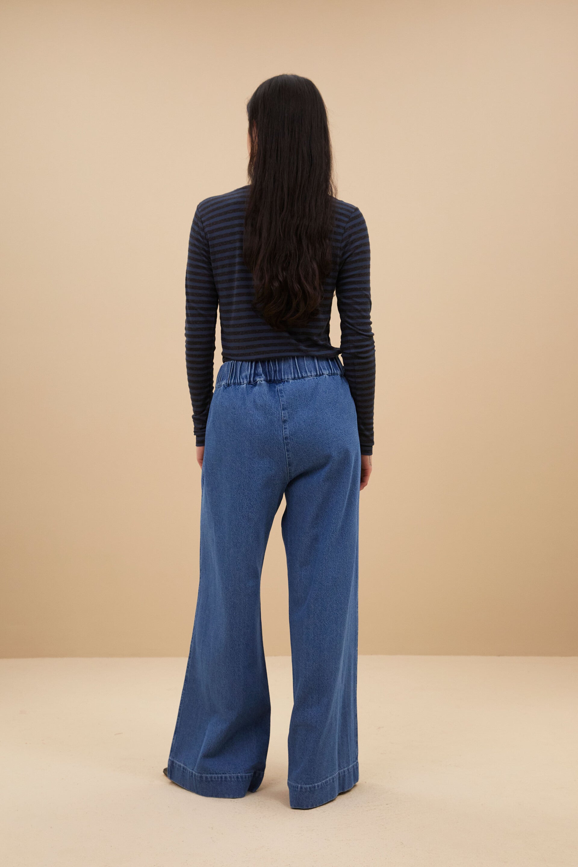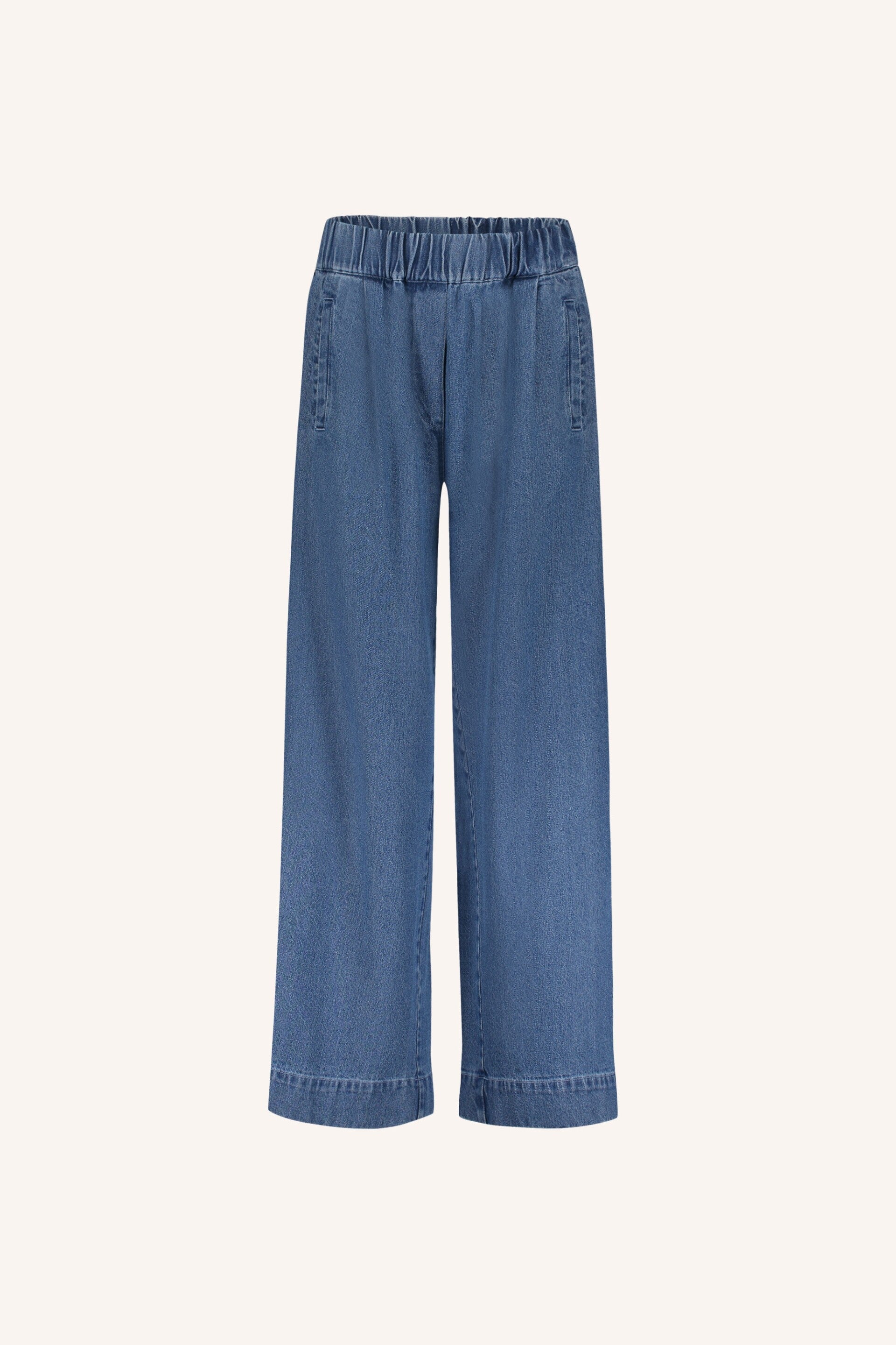 Onze all-time favorite! Deze stijlvolle comfortabele jeans met elastische taille en wijde pijpen is gemaakt van een katoen kwaliteit. De broek is een lang, rechtvallend model met een hoge elastische taille. Door de unikleurige denim heeft het een tijdloos design. Verder heeft het twee steekzakken aan de voorkant, kortom een essential voor in je garderobe! Combineer het samen met een blouse voor een elegante look of met sweater voor een meer sportieve uitstraling.