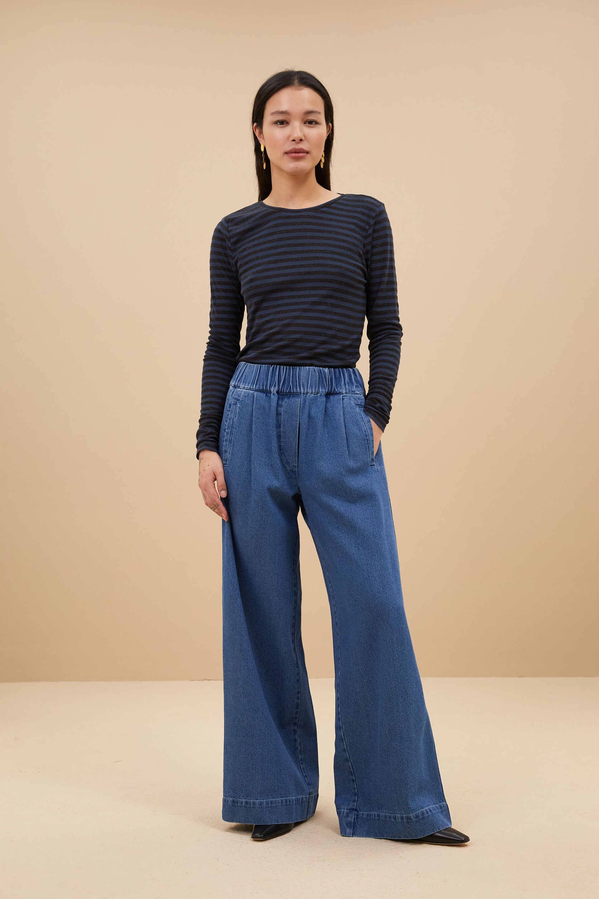 stijlvolle jeans met wijde pijpen en elastische taille