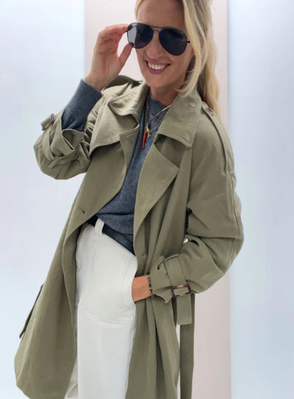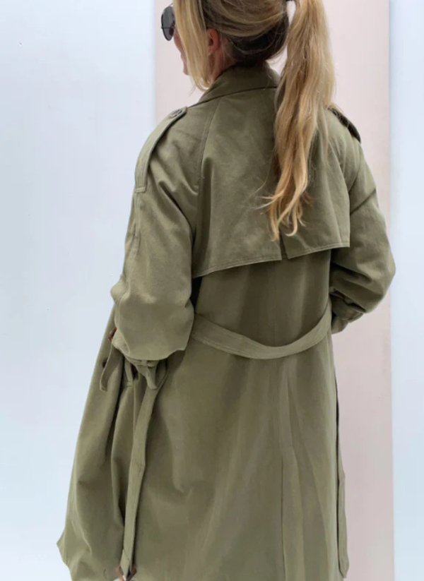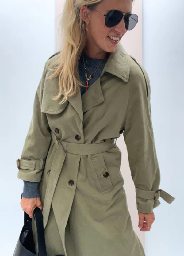deze superstijlvolle kaki trenchcoat is een musthave in jou garderobe.