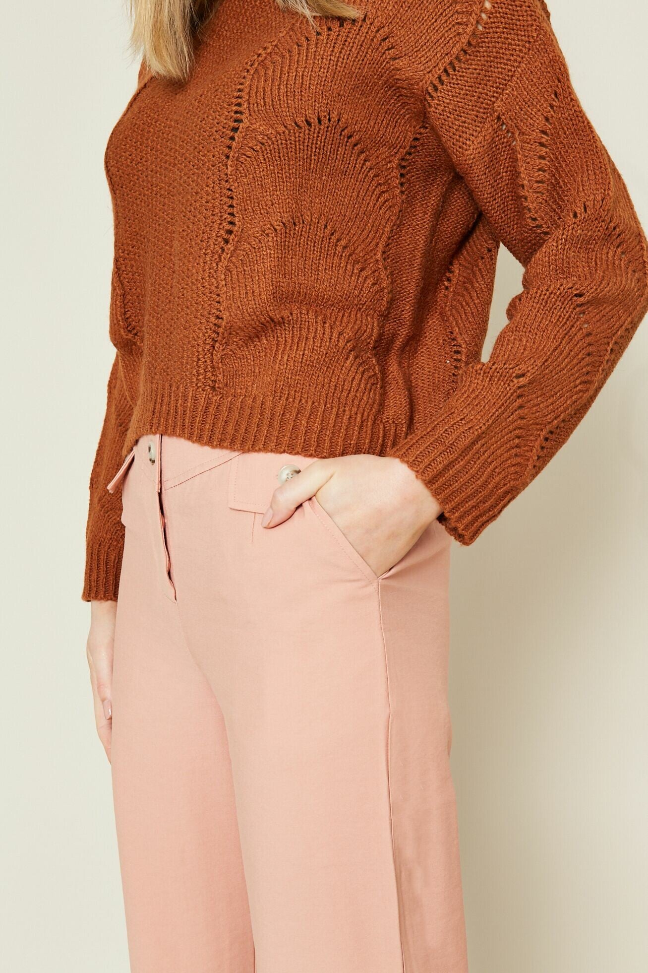 zachtroze broek met hoge taille