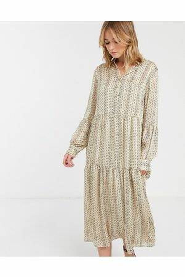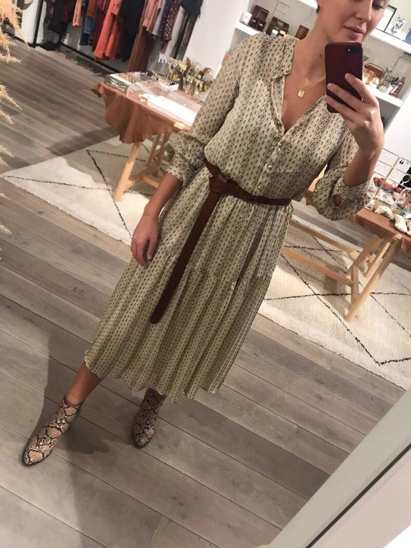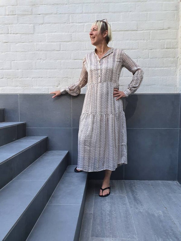 Bedrukte jurk met lange mouw en knoopsluiting aan de voorkant