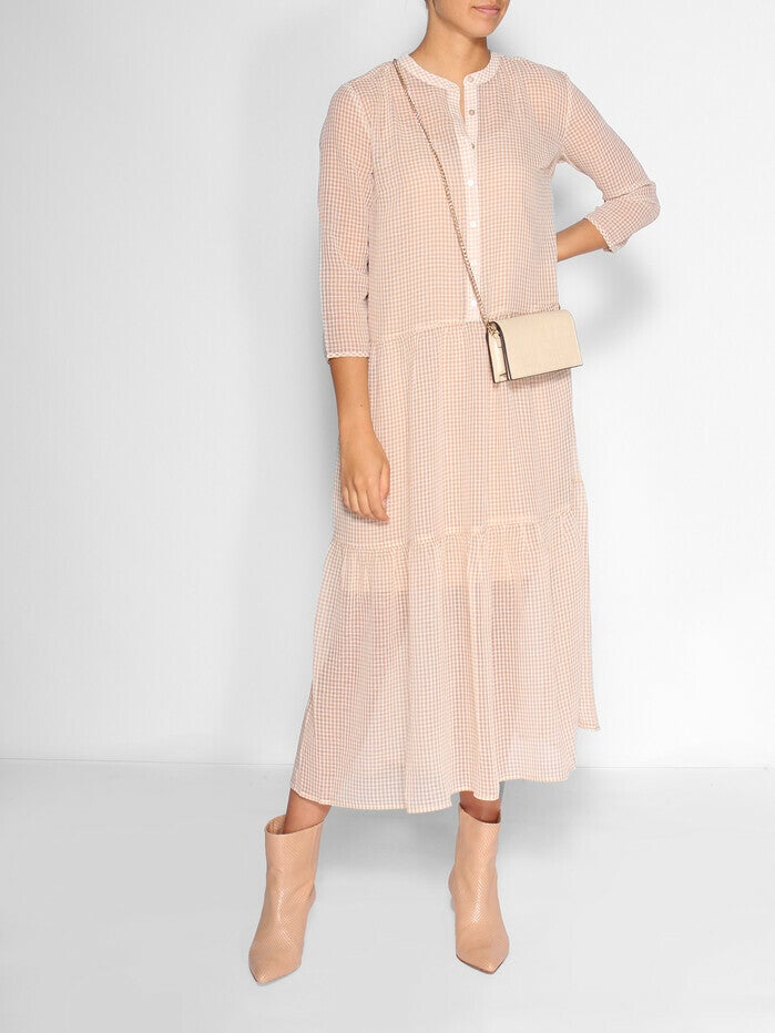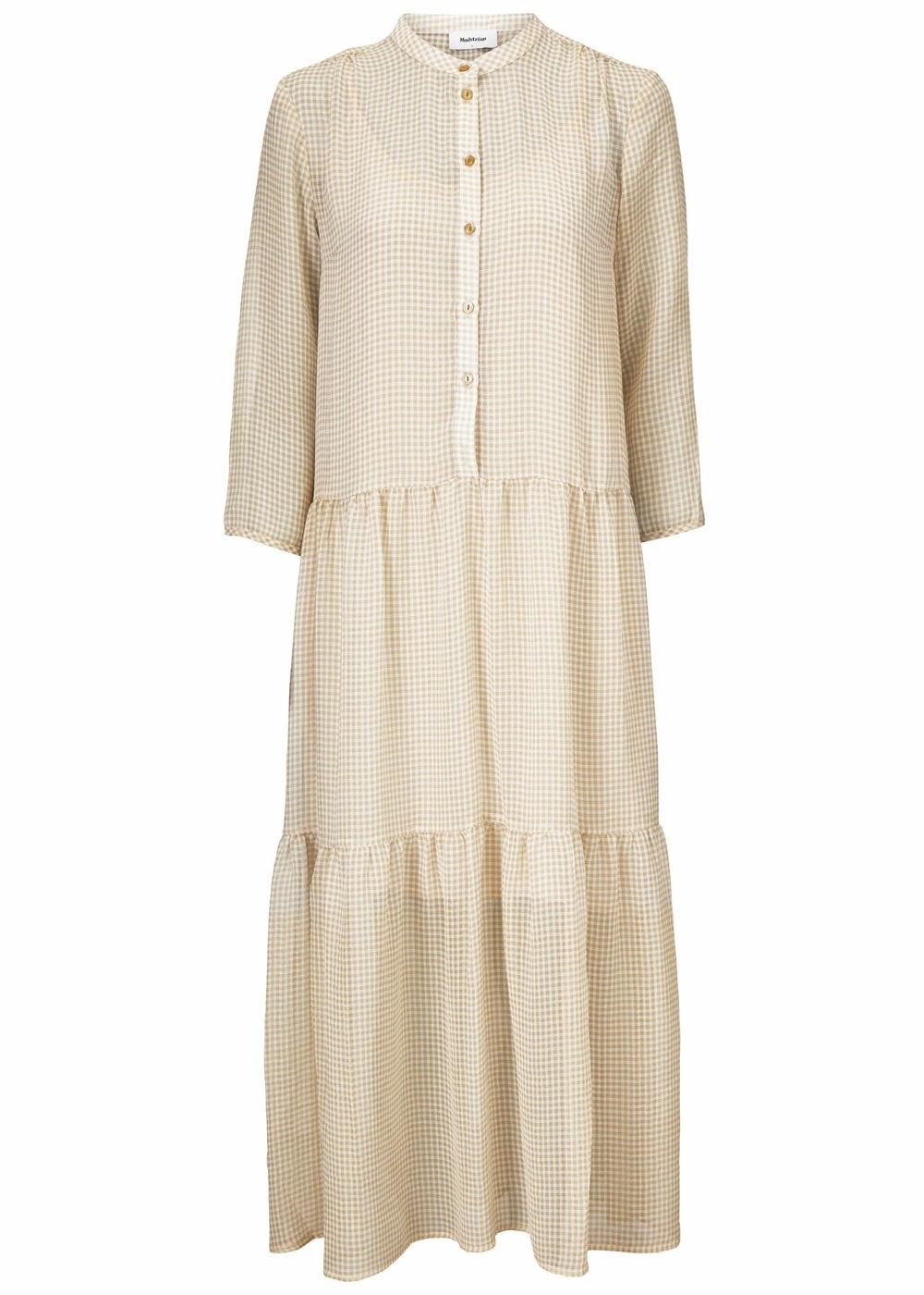 Deze jurk is een heerlijke en veelzijdige optie voor in je garderobe, want hij kan zowel voor dagdagelijks gebruik als voor feesten gebruikt worden, mits je hem goed stylt. De jurk heeft een los model met 3/4 mouwen, een ronde kraag en knoopjes aan de voorkant