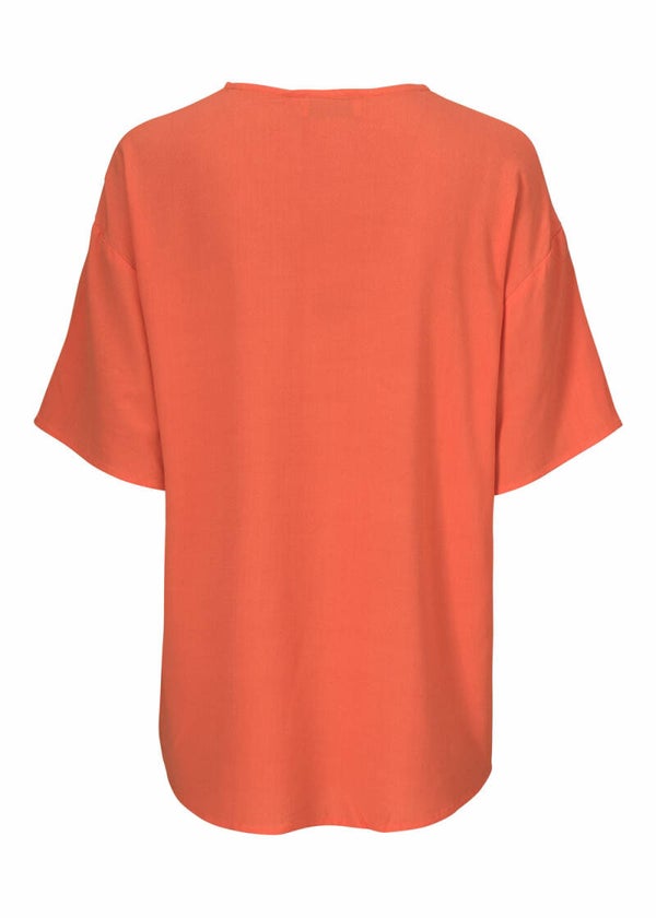 Destilleerde top in viscosekwaliteit. De top heeft korte mouwen en een losse pasvorm. Hij heeft een v-hals waardoor hij een zeer vrouwelijhke look heeft.100% Viscose