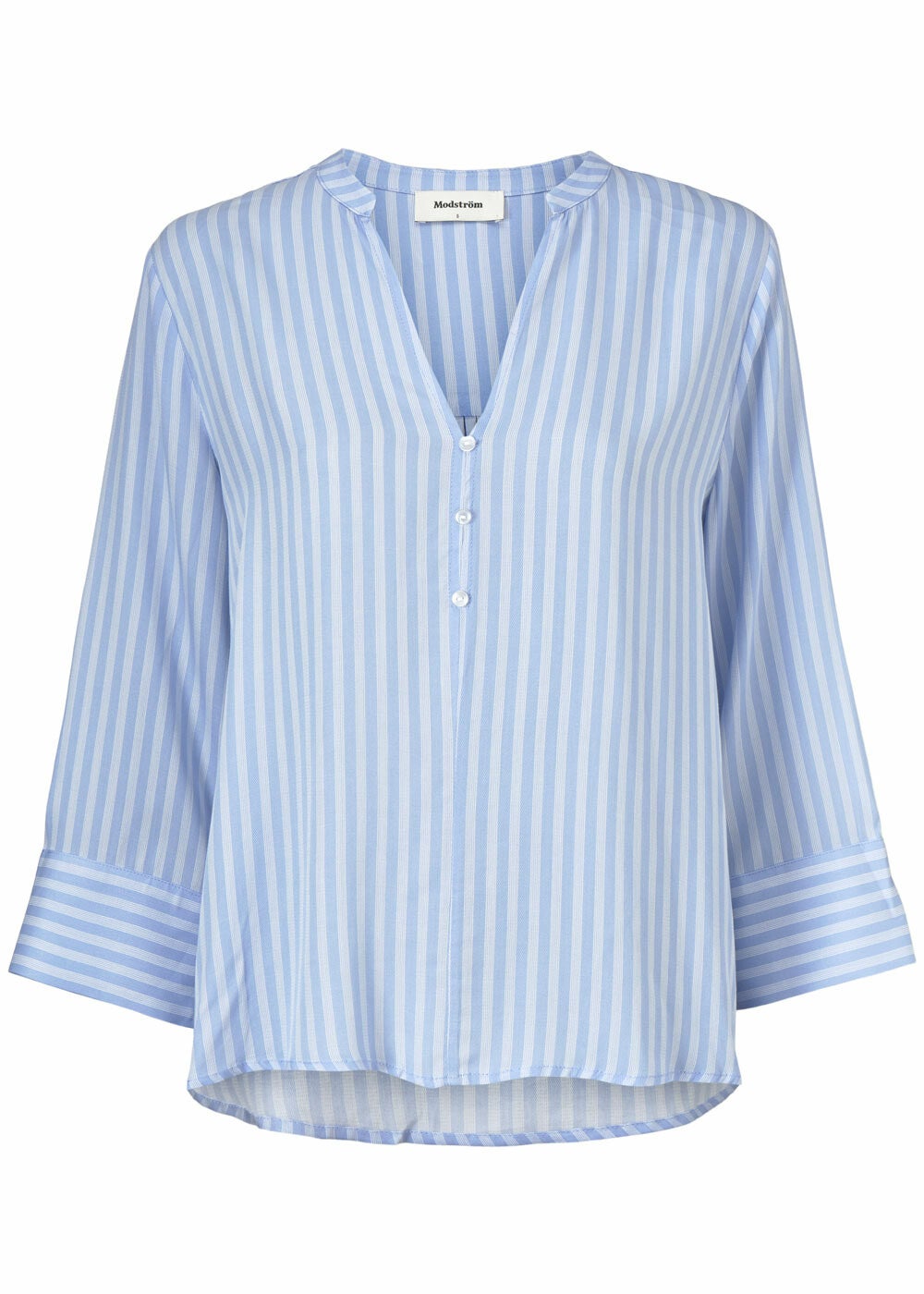 vrouwelijke top met strepenmotief. De top heeft een losse pasvorm en 3 kleine knoopjes aan has a loose fit and 3 small buttons at front. The top has V-neckline and is made of the softest viscose quality. 100% Viscose