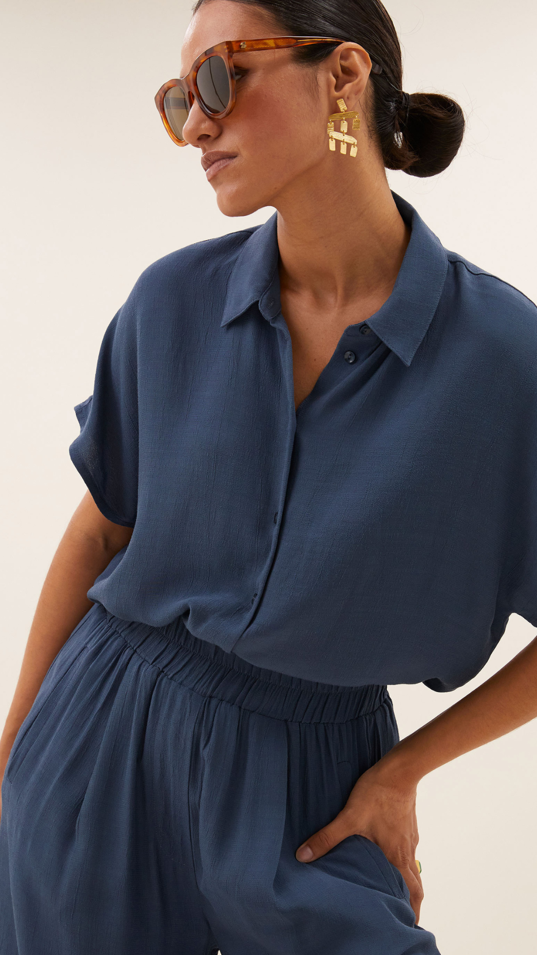 Voel je chic in deze stijlvolle viscose blouse. Deze casual blouse heeft een losse pasvorm en korte mouwen. De stijlvolle knoopsluiting en opstaande kraag geven je look een verfijnde touch. Gemaakt van Ecovero lenzing viscose, biedt deze blouse niet alleen comfort, maar ook een duurzame keuze.