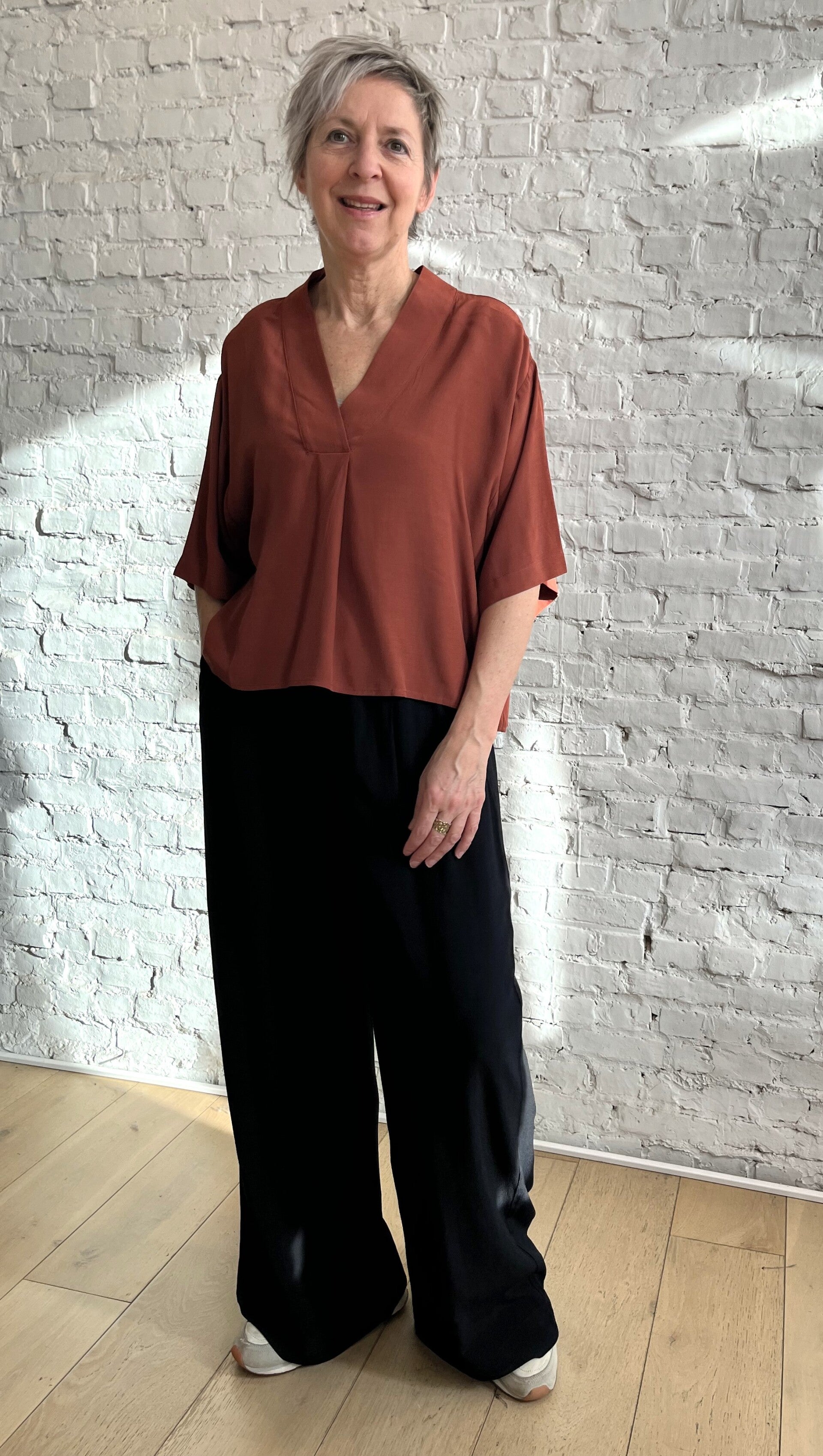 Ontdek deze super comfortabele stijlvolle broek; een perfecte mix van mode en comfort. Deze broek heeft een relaxte pasvorm en een hoge taille, ideaal voor dagelijks gebruik. Gemaakt van duurzame ecovero lenzing viscose, draagt het bij aan een beter milieu. Met een elastische tailleband en steekzakken combineert het gemak met stijl.