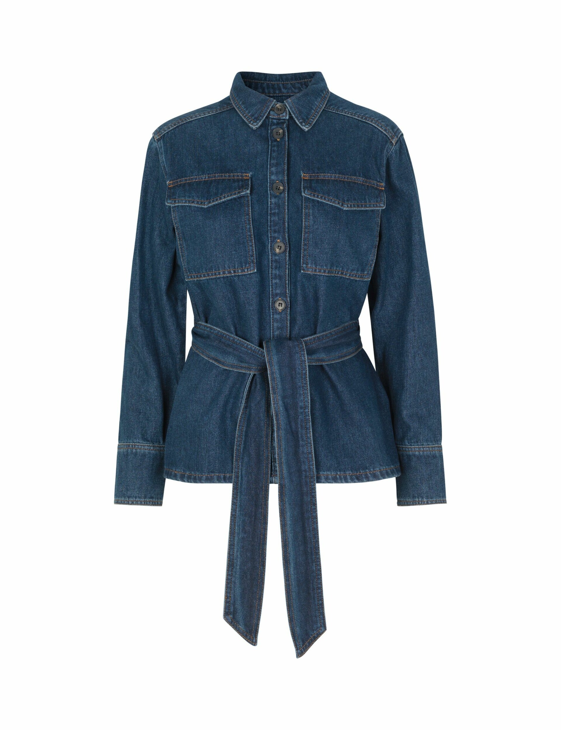 stoere jeansblouse / vest met borstzakken en ceintuur in de taille. Kan gestyled worden met jeans of als jas op een jurk of broek.Kwaliteit: 100% katoen