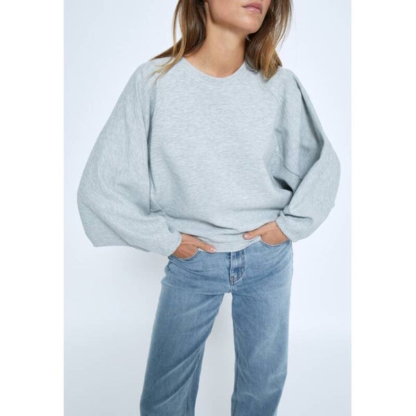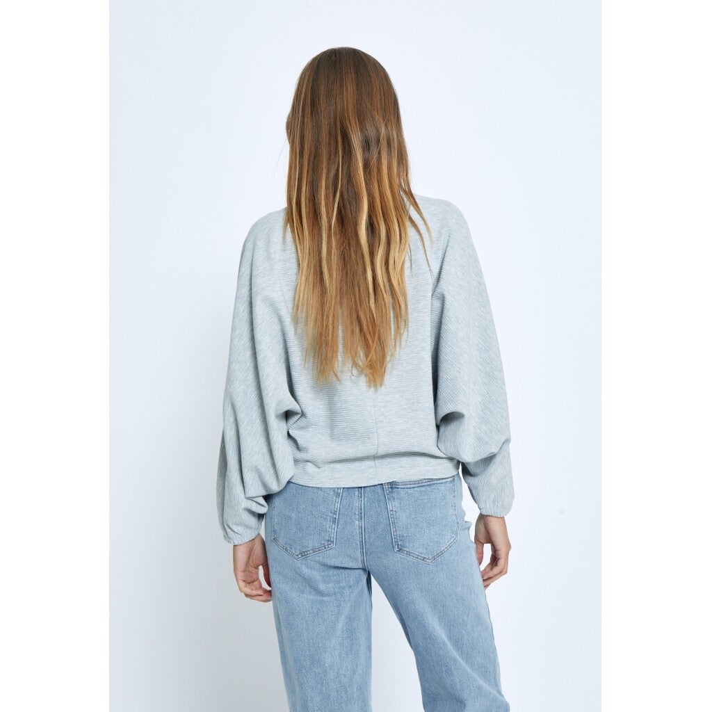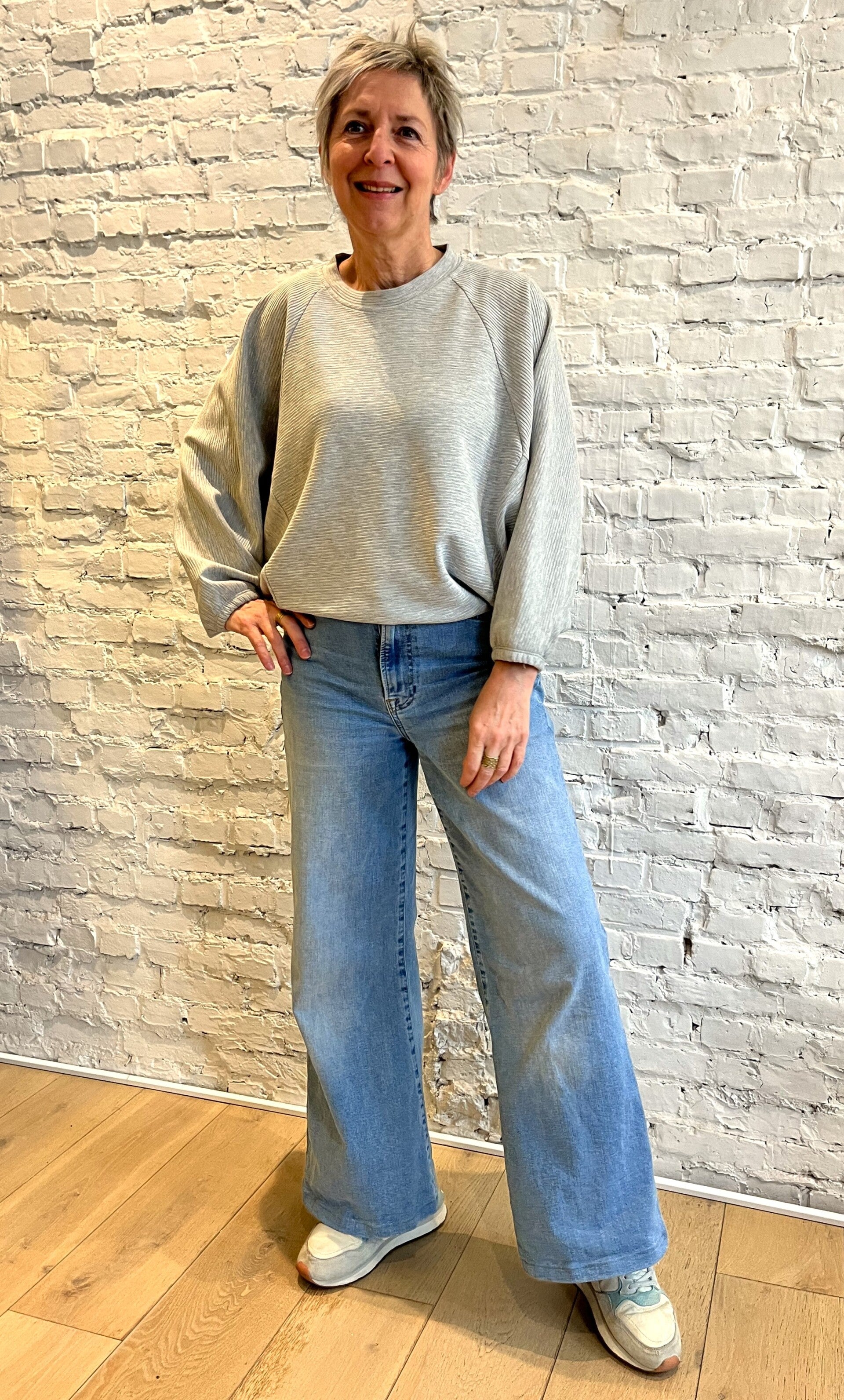 In deze prachtige lichtgrijze sweater voel je je heel de dag comfortabel. Hij is gemaakt van een soepele zachte ribbelstof. De vleermuismouwen geven een speelse look en zorgen voor optimale bewegingsvrijheid