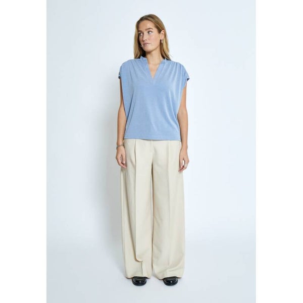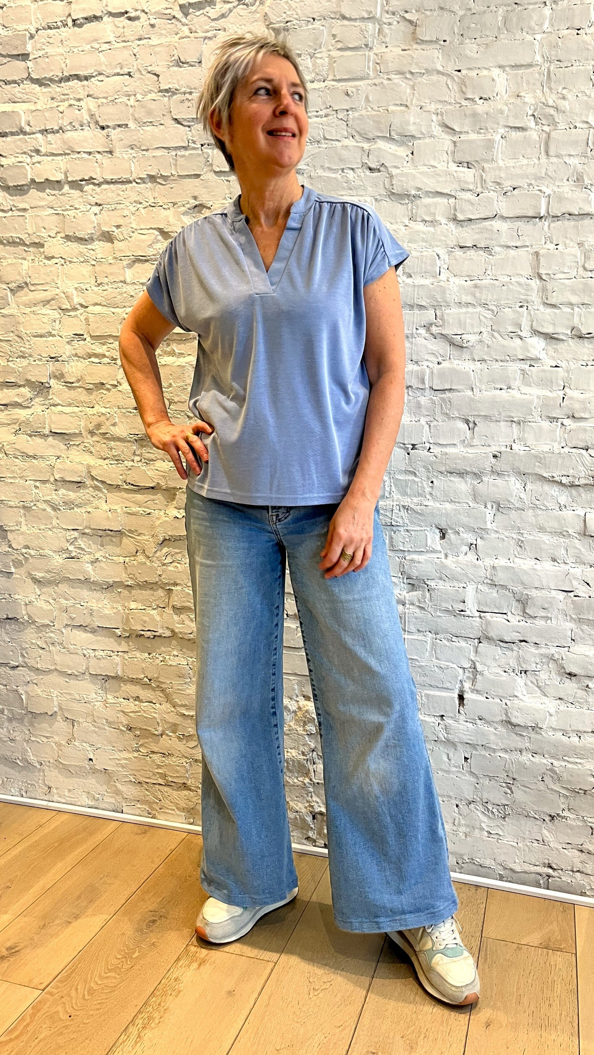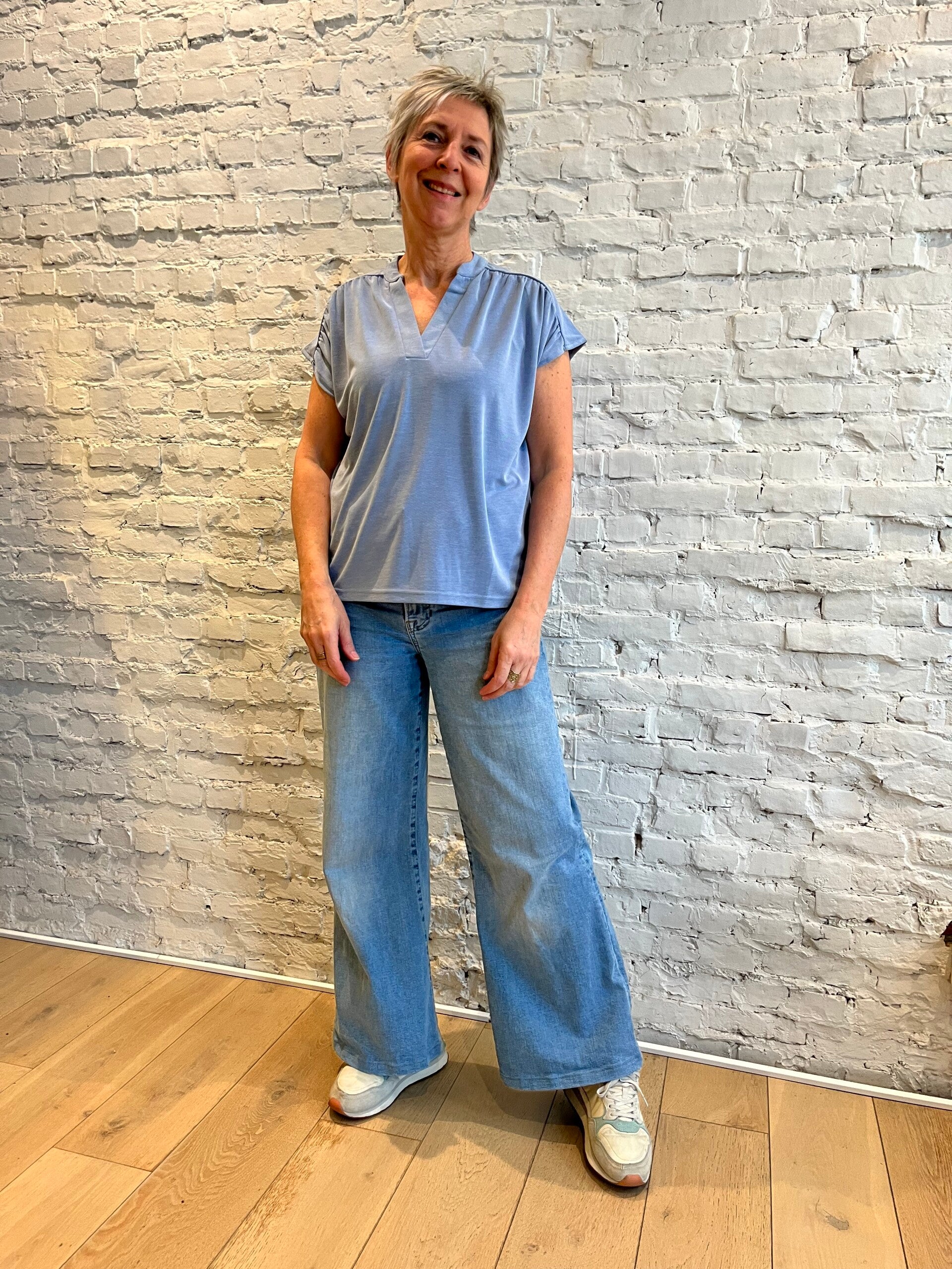 The perfect blue base! Deze top is gemaakt van heerlijk zachte modal en perfect om door te dragen in elk seizoen. Combineer met een fijne pantalon of je favoriete jeans en een jasje en je bent ready to go!