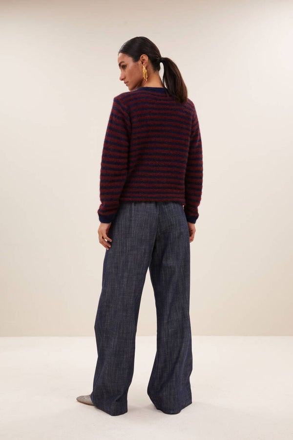 Ontdek deze prachtige all-time classic trui in een casual fit die perfect is voor elke dag. Gemaakt van een zachte alpacamix, biedt deze trui met lange mouwen en een comfortabele ronde hals een ontspannen stijl met een subtiel gestreept patroon. Ideaal om moeiteloos een casual look af te maken en je warm te houden met een vleugje tijdloze charme.