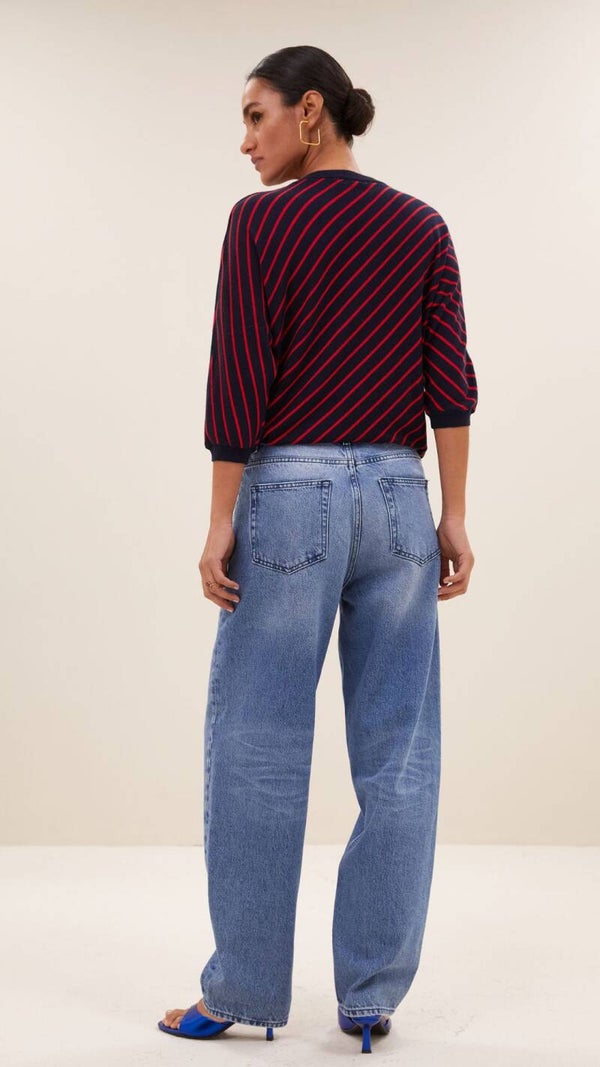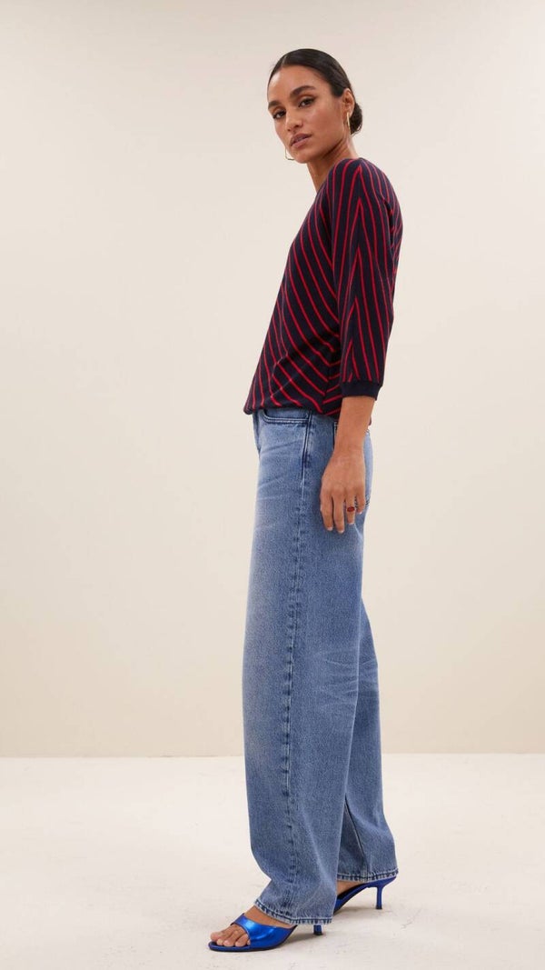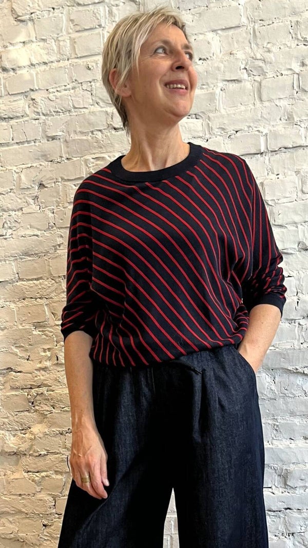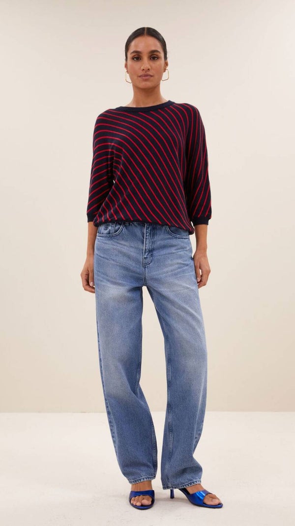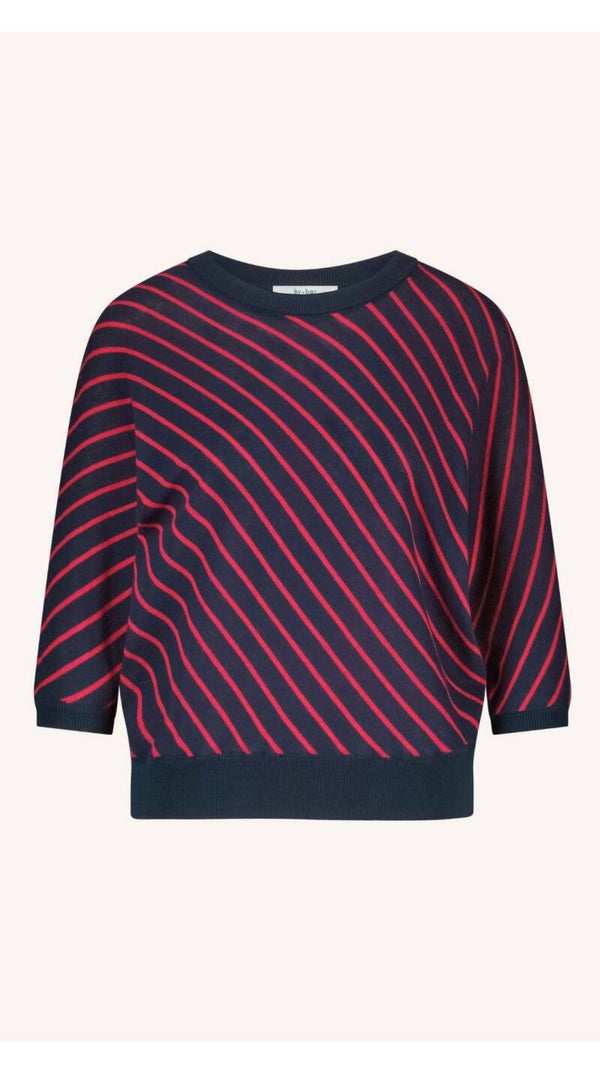 De stijlvolle pippa stripe pullover in gestreepte print en ribgebreide randen zorgen voor een leuke uitstraling, terwijl de vleermuismouw en ronde halslijn zorgen voor extra draagcomfort. Voeg een frisse touch toe aan je casual garderobe!