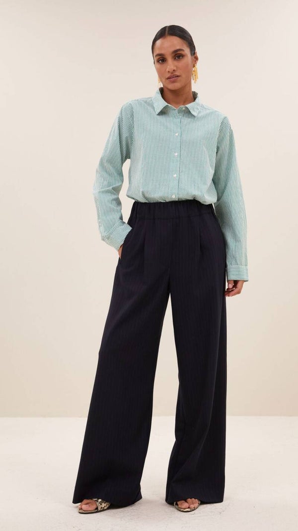 Ervaar de tijdloze elegantie van deze mooie gestreepte blouse. De lange mouwen en het subtiele streeppatroon geven je outfit een elegante en verfijnde uitstraling. Perfect voor momenten waarop je stijlvol en ontspannen tegelijk wilt zijn, straal je natuurlijke charme uit met deze blouse. Combineer de blouse met je favoriete pants voor de perfecte look!
